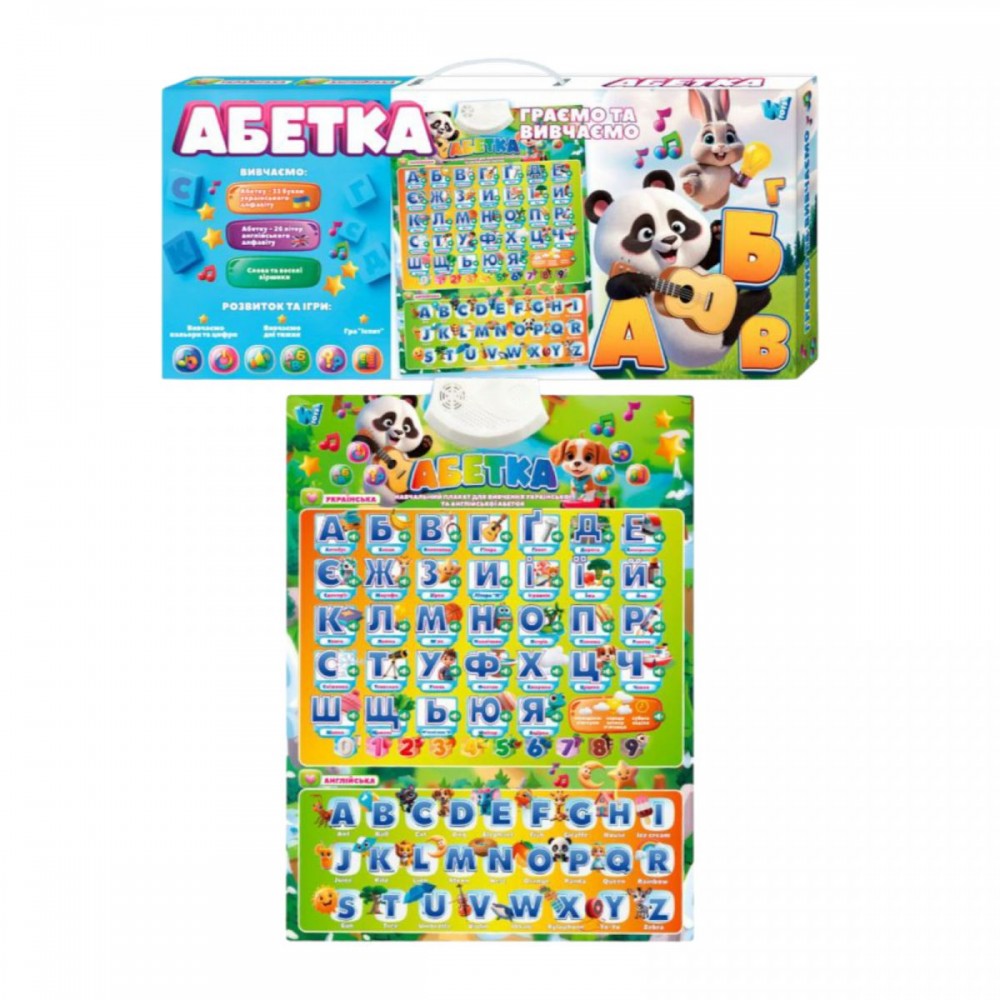 Інтернет-магазин eToys пропонує вашій увазі товар "Абетка "Граємо та вивчаємо", ОЗВУЧ. УКР. МОВОЮ, укр. та англ. абетка, кольои, цифри, іспит, пісні, казки, вірші, в коробці" за ціною 378 грн..