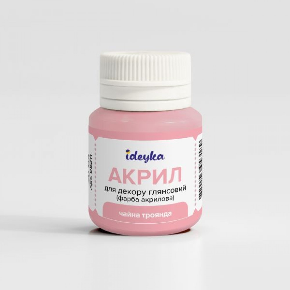 Акрилова фарба ТМ Iдейка 20мл, Чайна троянда (98211). Фарба екологічна, виготовлена з високоякісних органічних і неорганічних пігментів. Кремова консистенція фарби дозволяє використовувати її відразу, без додаткового розведення. Фарба рівномірно лягає і швидко висихає. Може використовуватися для нанесення на полотно, картон, папір, дерево і інші поверхні.