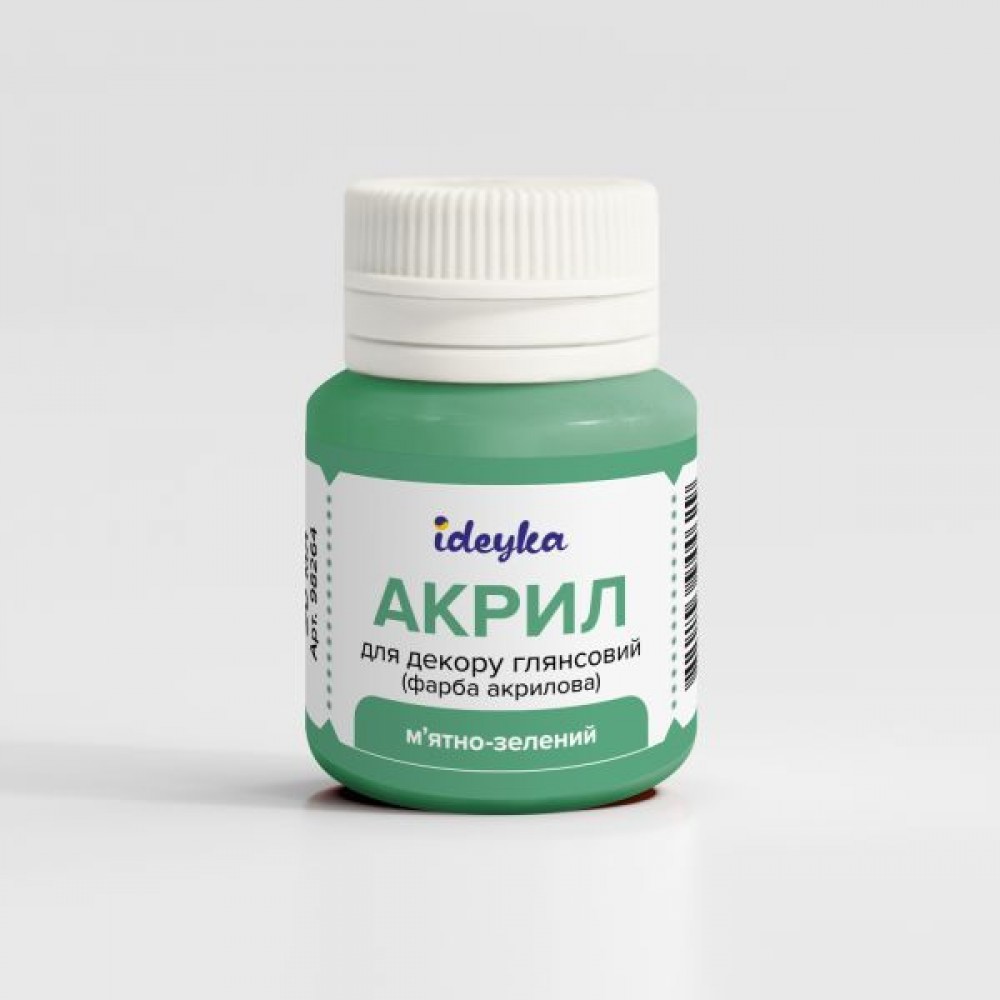 Акрилова фарба ТМ Iдейка 20мл, М`ятно-зелена (98264). Фарба екологічна, виготовлена з високоякісних органічних і неорганічних пігментів. Кремова консистенція фарби дозволяє використовувати її відразу, без додаткового розведення. Фарба рівномірно лягає і швидко висихає. Може використовуватися для нанесення на полотно, картон, папір, дерево і інші поверхні.