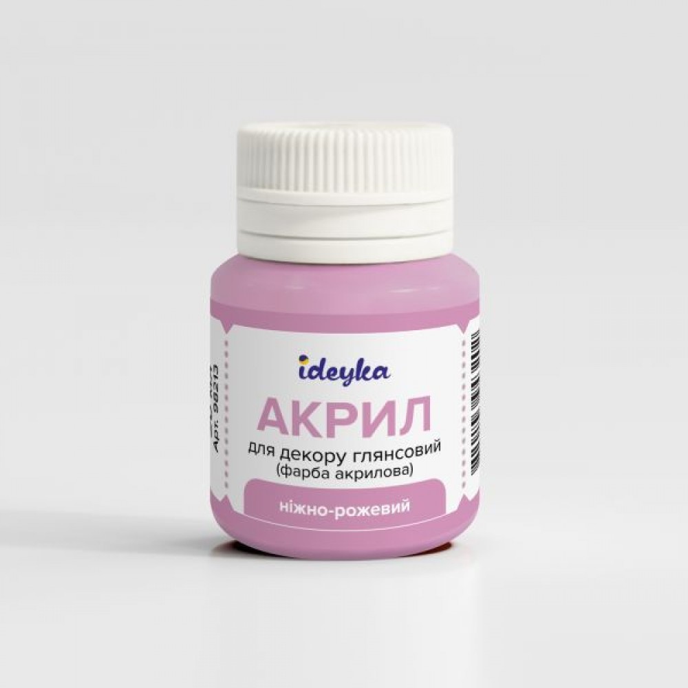 Акрилова фарба ТМ Iдейка 20мл, Ніжно-рожевий (98213). Фарба екологічна, виготовлена з високоякісних органічних і неорганічних пігментів. Кремова консистенція фарби дозволяє використовувати її відразу, без додаткового розведення. Фарба рівномірно лягає і швидко висихає. Може використовуватися для нанесення на полотно, картон, папір, дерево і інші поверхні.