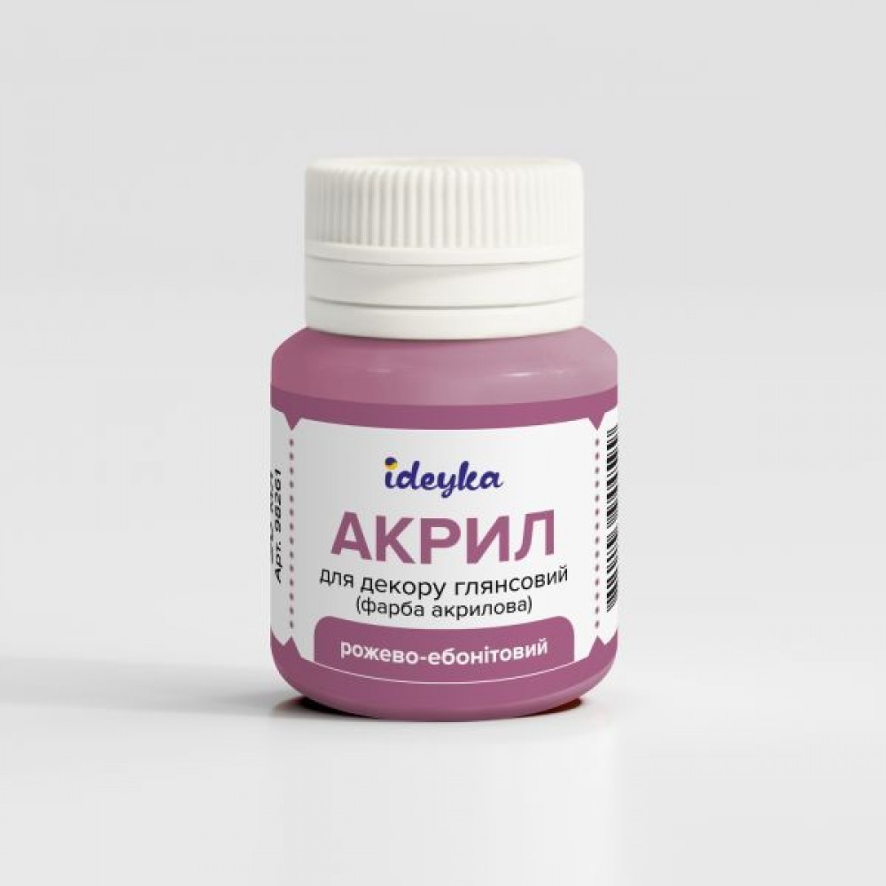 Акрилова фарба ТМ Iдейка 20мл, Рожево-ебонітова (98261). Фарба екологічна, виготовлена з високоякісних органічних і неорганічних пігментів. Кремова консистенція фарби дозволяє використовувати її відразу, без додаткового розведення. Фарба рівномірно лягає і швидко висихає. Може використовуватися для нанесення на полотно, картон, папір, дерево і інші поверхні.
