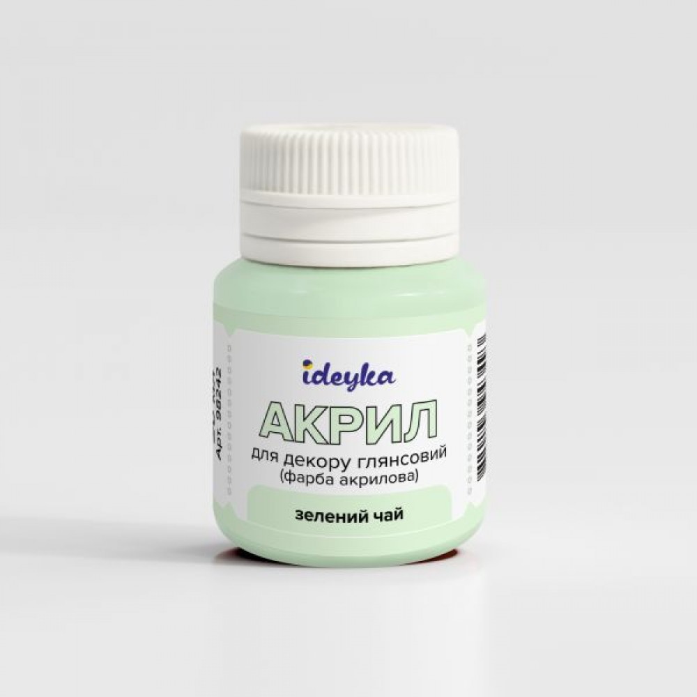 Акрилова фарба ТМ Iдейка 20мл, Зелений чай (98242). Фарба екологічна, виготовлена з високоякісних органічних і неорганічних пігментів. Кремова консистенція фарби дозволяє використовувати її відразу, без додаткового розведення. Фарба рівномірно лягає і швидко висихає. Може використовуватися для нанесення на полотно, картон, папір, дерево і інші поверхні.