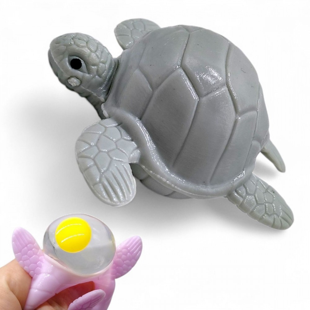 Цікава іграшка-антистрес у вигляді черепашки. В черепашку поміщена кулька з гелевим наповнювачем подібна до сирого яйця. Якщо натиснути на черепашку, кулька-яйце вилізе назовні; відпустити - сховається в середину черепашки. Виготовлено з якісних та безпечних матеріаліі. Рекомендовано для дітей старше 3-х років.