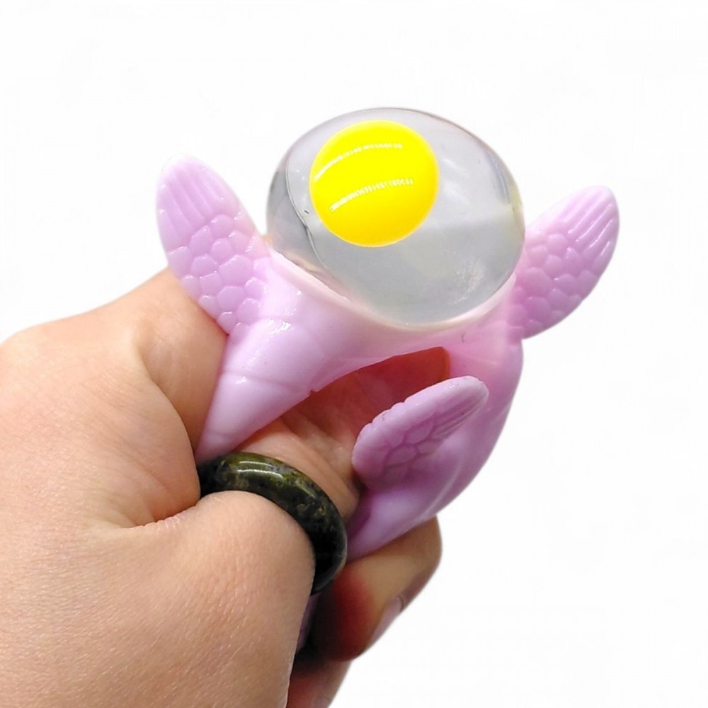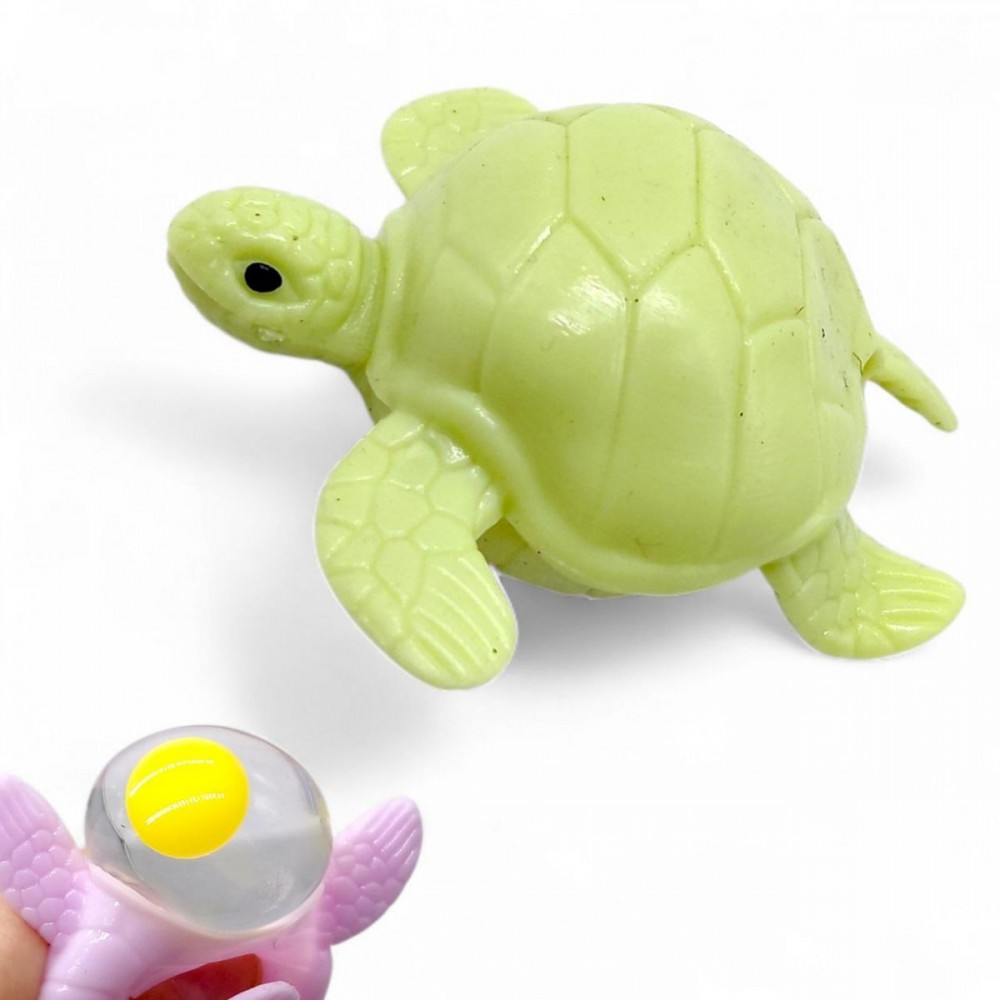 Цікава іграшка-антистрес у вигляді черепашки. В черепашку поміщена кулька з гелевим наповнювачем подібна до сирого яйця. Якщо натиснути на черепашку, кулька-яйце вилізе назовні; відпустити - сховається в середину черепашки. Виготовлено з якісних та безпечних матеріаліі. Рекомендовано для дітей старше 3-х років.
