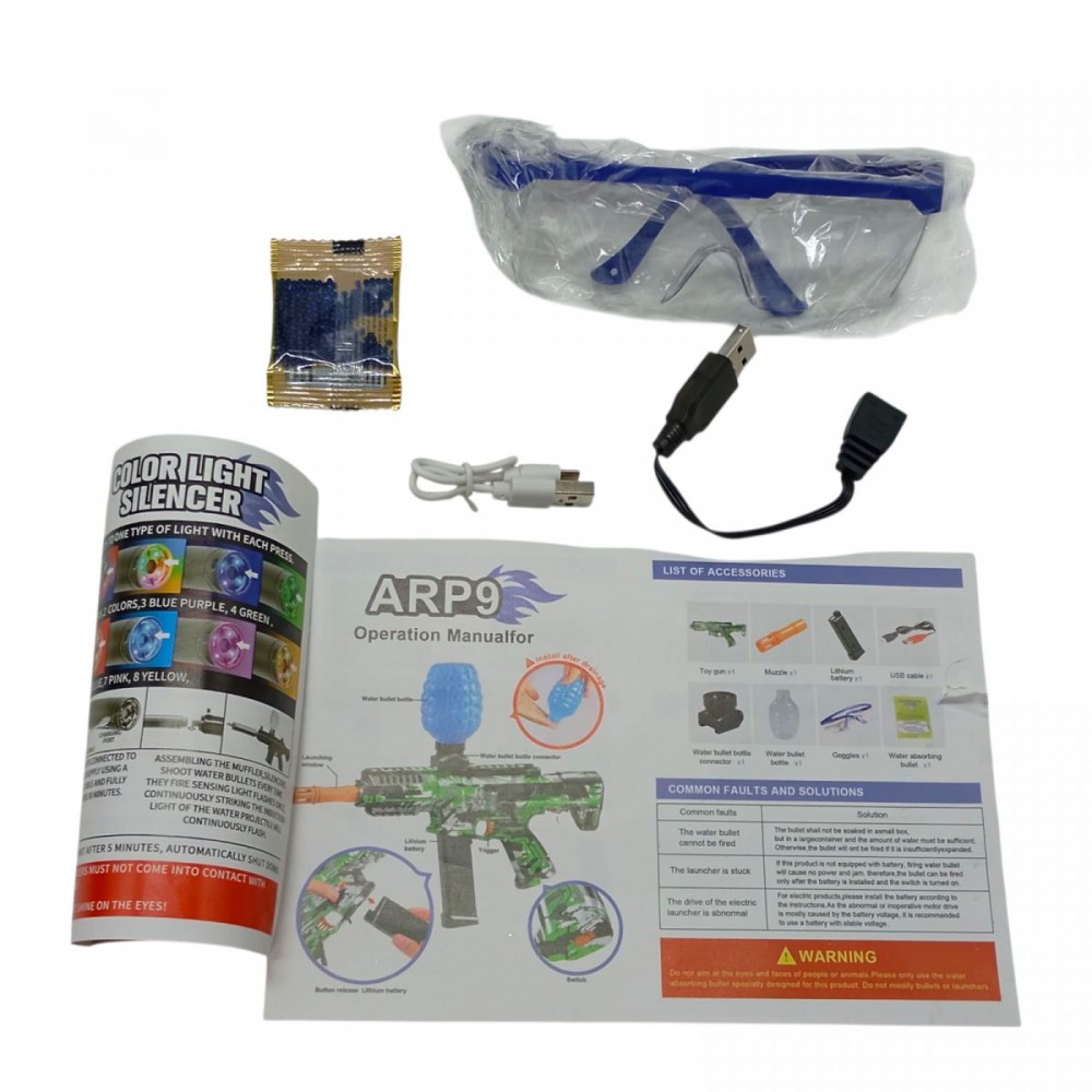 Інтернет-магазин eToys пропонує вашій увазі товар "Автомат вбудований акумулятор, стріляє орбізами, глушник з підсвічуванням, магазин, захисні окуляри, в коробці" за ціною 1 066 грн..