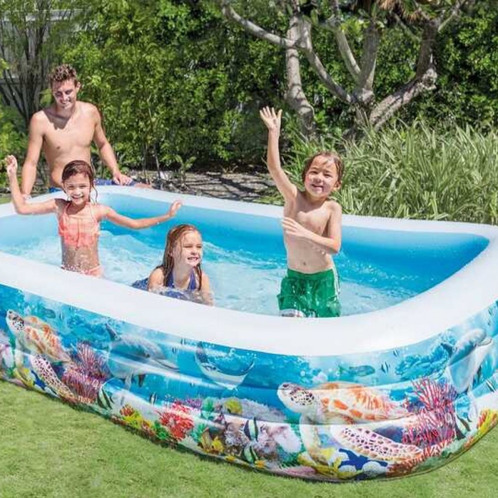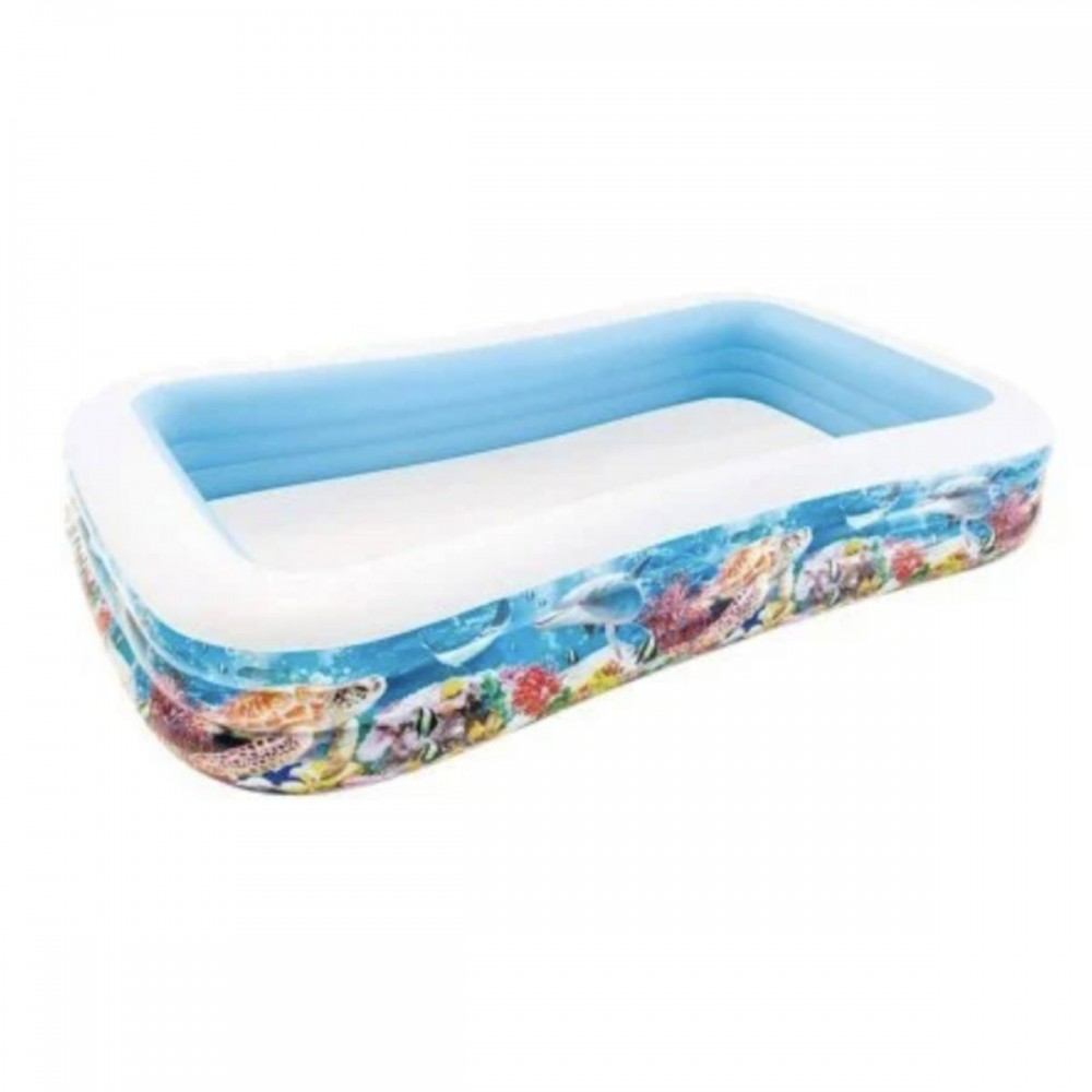 Надувний басейн “Тропічний риф” — просторе рішення для літнього відпочинку всієї родини. Завдяки розміру 305×183×56 см у ньому комфортно гратися дітям і освіжитися дорослим. Міцні стінки з кількох повітряних камер забезпечують стійкість, а яскравий морський принт додає настрою. Басейн легко встановлюється без спеціальних інструментів і підходить для використання на подвір’ї або дачі.