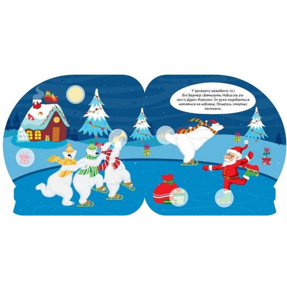 Чарівна книжечка за наліпками у вигляді кришталевої кулі. На її сторінках ви побачите, як люди і тварини готуються до дивовижного свята - Нового року. Вони прикрашають домівки, готують дарунки та частування. А за допомогою наліпок малюк доповнюватиме малюнки та розвиватиме дрібну моторику, кмітливість, уяву, логіку і фантазію.