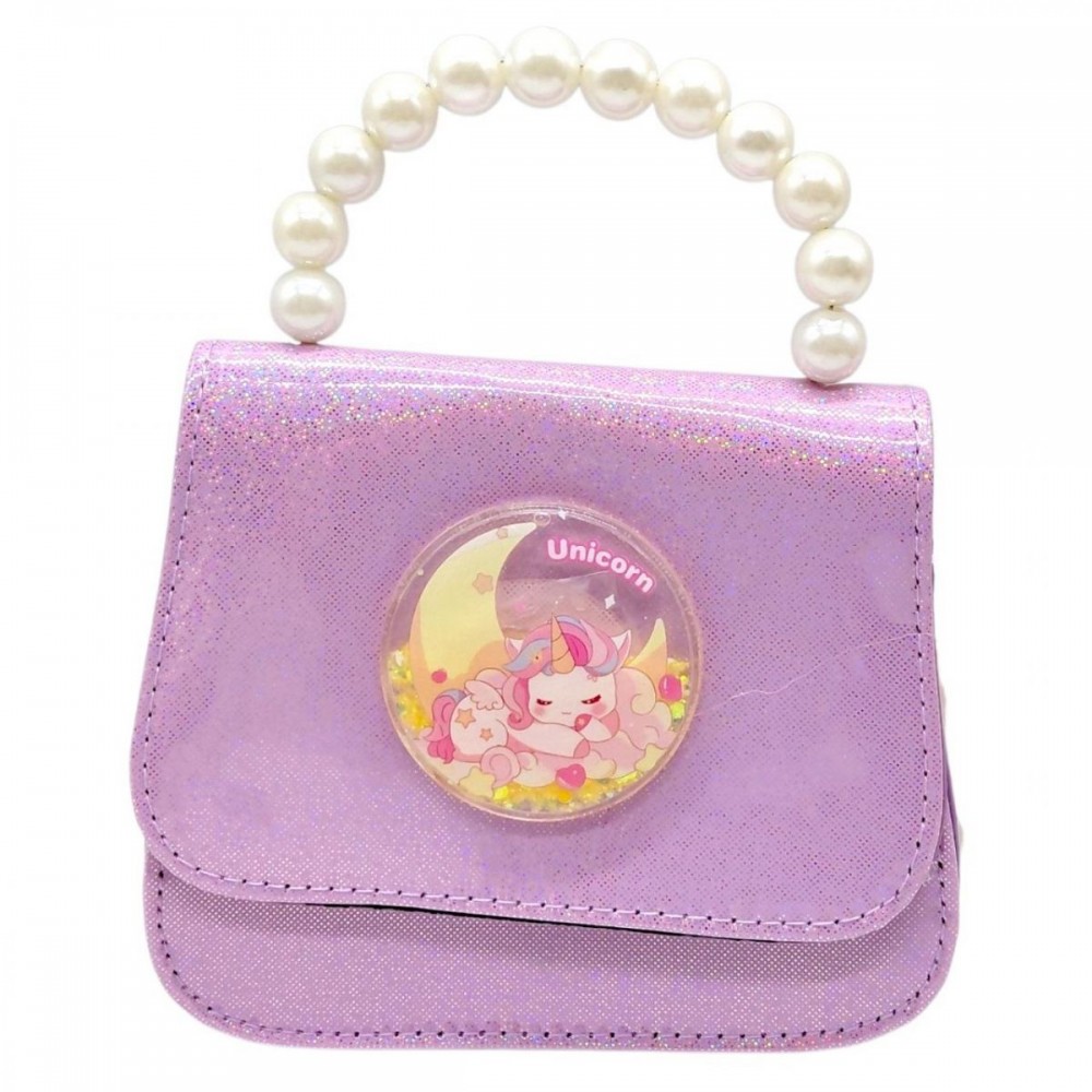 Дитяча сумочка-клатч з милим єдинорогом — це стильний аксесуар для маленької модниці. Виготовлена у компактному форматі, вона зручна для носіння та підходить для зберігання дрібниць. Блискучий матеріал і декоративний елемент із рухомими деталями додають особливого шарму. Сумочка стане чудовим доповненням до образу та підійде як подарунок для дитини.