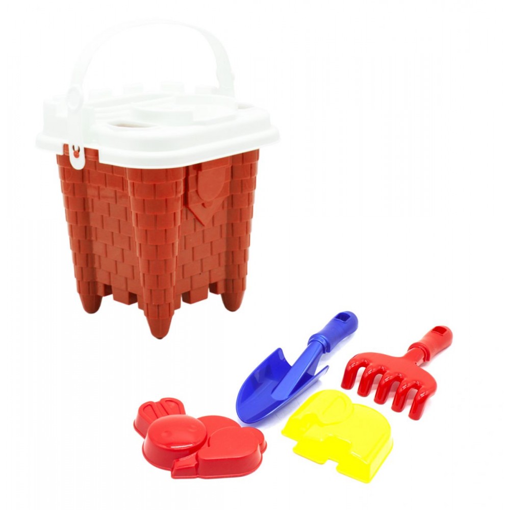 Дитячий пісочний набір "Вежа" буде цікавим подарунком для дитини. У наборі є: відерце в формі башточки, грабельки, лопатка, ситечко і 2 пасочки. Виконано набір з якісного і міцного пластику.