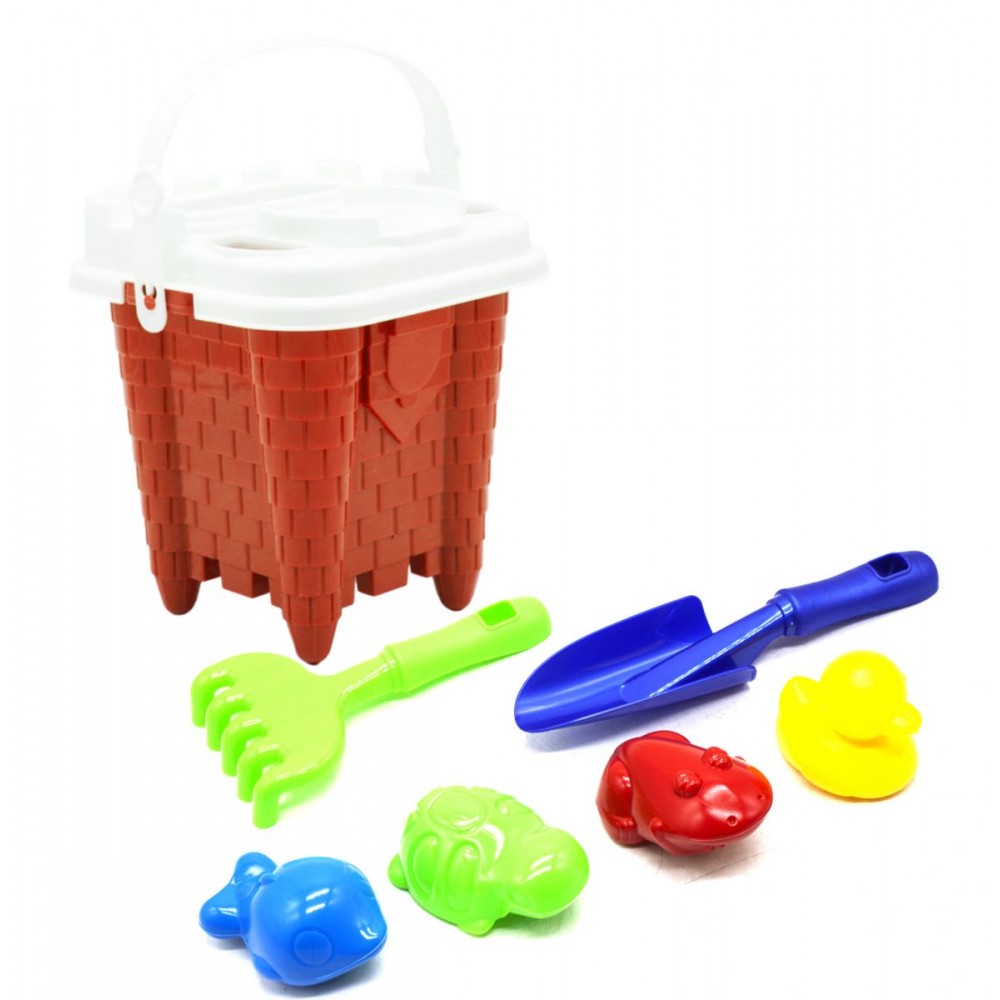 Дитячий пісочний набір "Вежа" буде цікавим подарунком для дитини. У наборі є: відерце в формі башточки, грабельки, лопатка, ситечко і 4 пасочки. Виконано набір з якісного і міцного пластику.