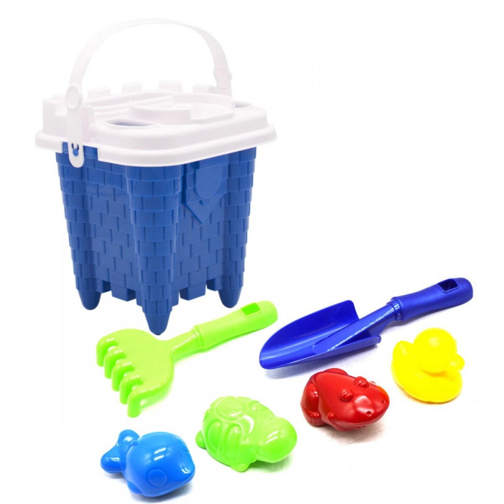Дитячий пісочний набір "Вежа" буде цікавим подарунком для дитини. У наборі є: відерце в формі башточки, грабельки, лопатка, ситечко і 4 пасочки. Виконано набір з якісного і міцного пластику.