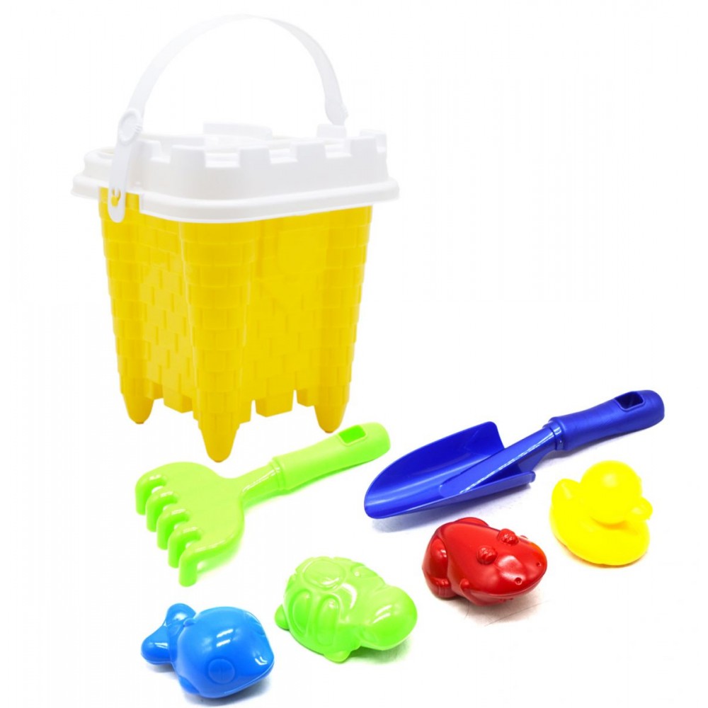 Дитячий пісочний набір "Вежа" буде цікавим подарунком для дитини. У наборі є: відерце в формі башточки, грабельки, лопатка, ситечко і 4 пасочки. Виконано набір з якісного і міцного пластику.