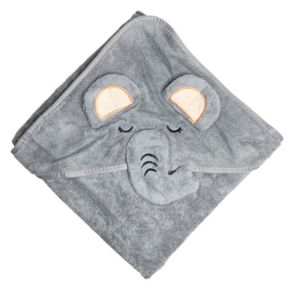 Дитячий рушник з капюшоном "Слон" 80×80 см - м’який та зручний аксесуар для щоденного догляду за малюком після купання. Капюшон з милим дизайном створюють затишок та допомагають швидко зігріти дитину.