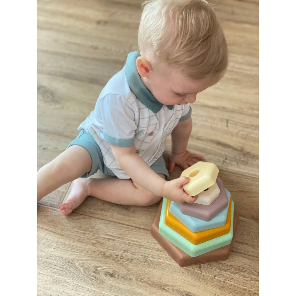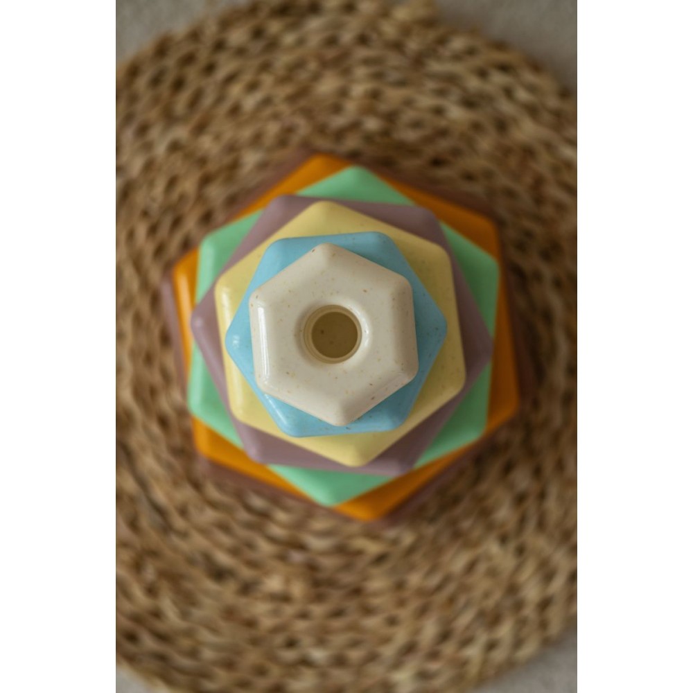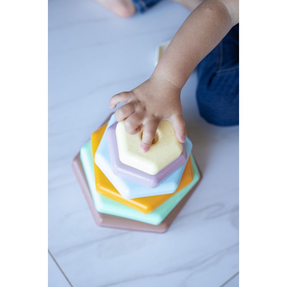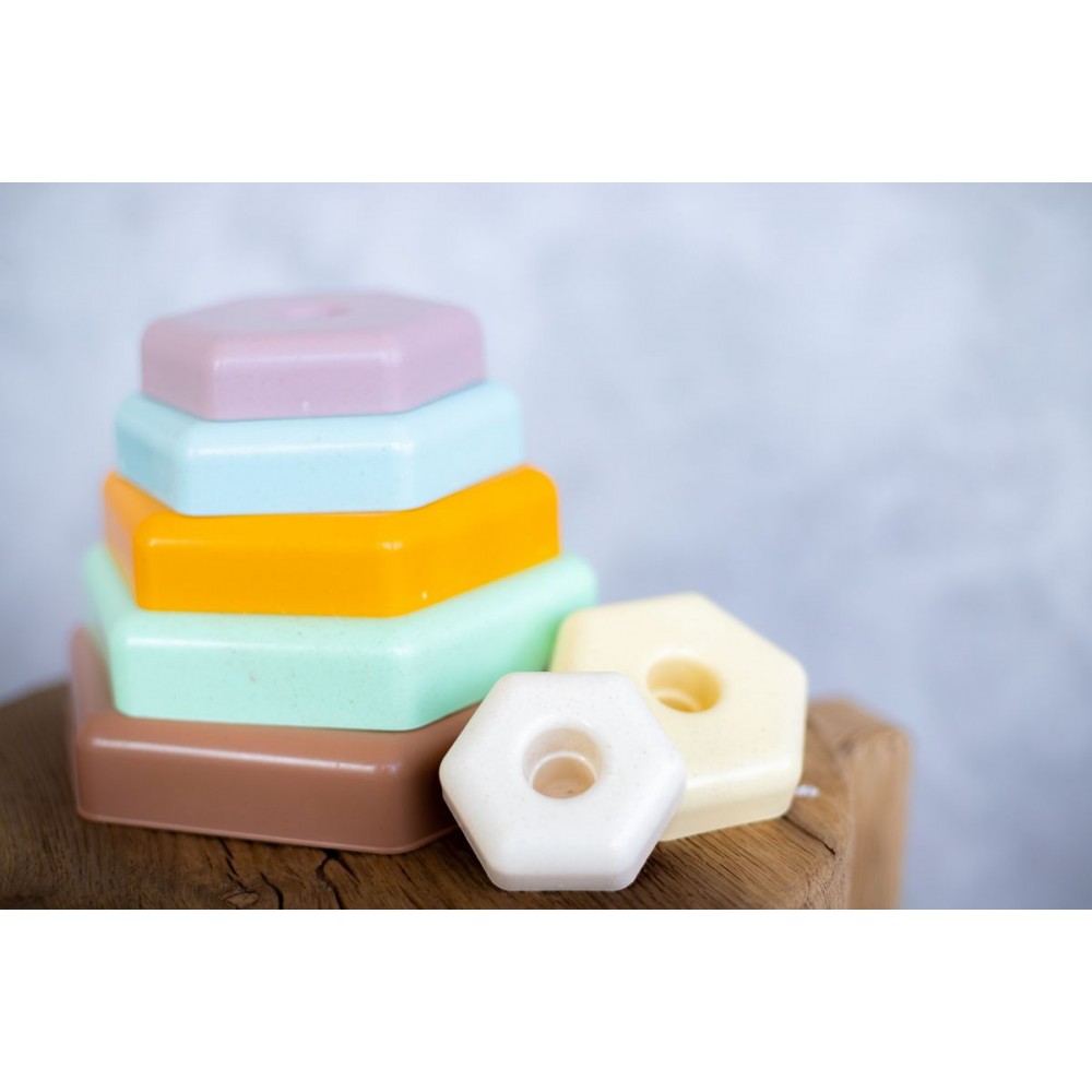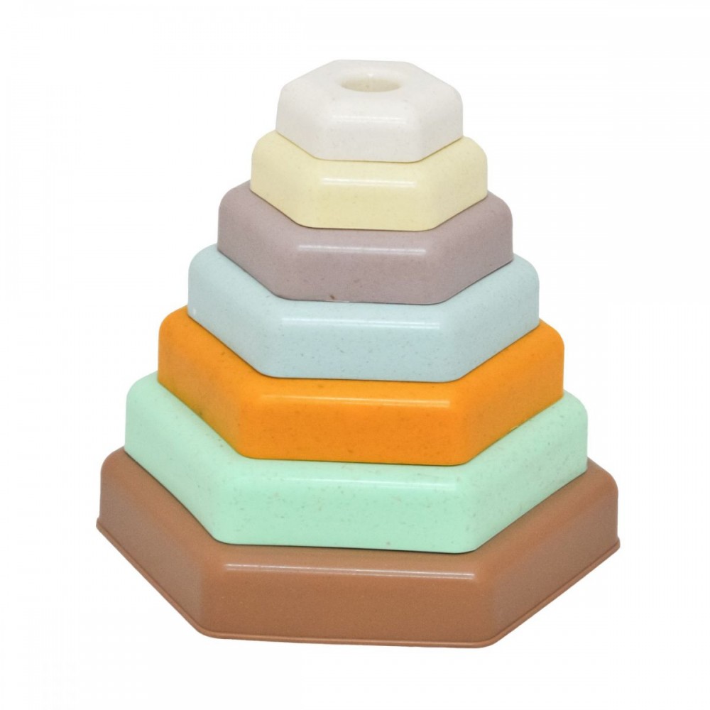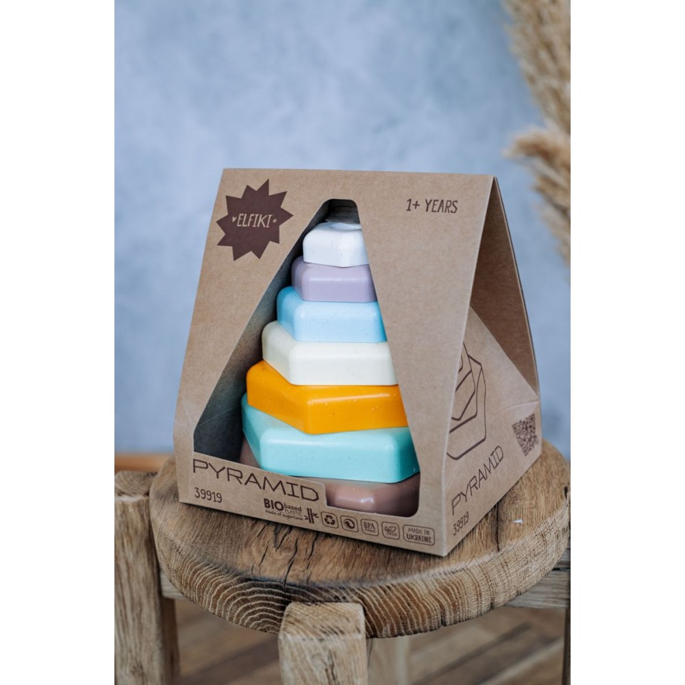 До Вашої уваги нова екологічна іграшка ТМ ELFIKI – ECO Іграшка розвиваюча Пірамідка, ELFIKI Наслідуючи передові світові екологічні тенденції компанія Тигрес, перша в Україні, випустила лінію іграшок на основі біологічної сировини. Лінія іграшок ТМ Elfiki natural - це саме ті якісні іграшки, яким діти будуть радіти протягом тривалого часу. Іграшки виготовлені з біопластику (поліетилену Green PE TM Braskem) та деревно-пластикового композиту (WPC ). - На відміну від звичайного поліетилену, зелений ПЕ виготовляється не з сирої нафти, а з цукрової тростини. Екологічна іграшка ТМ ELFIKI виготовлена ??з природних матеріалів екологічно чистим способом. Спосіб без виділення вуглецю, парникових газів або хімічних токсинів. Вони можуть потрапляти у водні шляхи та навколишнє середовище. - Поліетилен на біологічній основі (Bio-PE) підходить для екструзії, лиття під тиском і видувного формування та на 100% придатний для вторинної переробки (100% recycled). - З екологічно чистим поліетиленом Green PE та WPC висока якість матеріалу може бути оптимально поєднана з безпекою, екологічністю та можливістю переробки. Іграшки мають пастельний колір з вкрапленнями деревинита приємний натуральний запах деревини. ми виробляємо іграшки без клею та шурупів. Пірамідка складається з 7 елементів різного розміру і кольору, які накладаються один на одного. Під час гри малюк знайомиться з формами, кольорами і розмірами предметів. Іграшка сприяє розвитку просторового мислення, уваги та дрібної моторики рук. Елементи пірамідки мають приємну поверхню, їх зручно тримати в маленьких ручках, а також обмальовувати на папері. Іграшка безпечна для дітей від 1 року. Упаковка: крафтова картонна коробка з віконцем. Обираючи українську іграшку ви дбаєте про розвиток і майбутнє наших дітей!