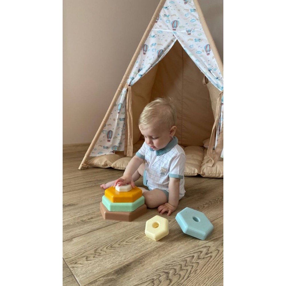 Пірамідка складається з 7 елементів різного розміру і кольору