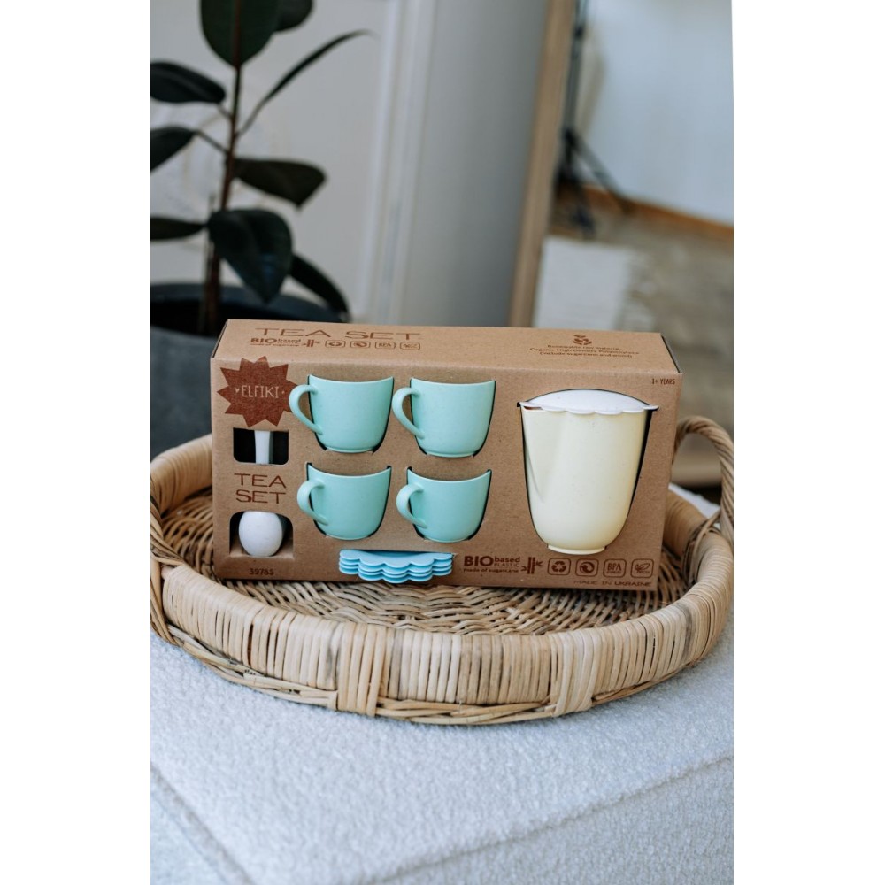 До Вашої уваги нова екологічна іграшка ТМ ELFIKI – ECO Набір чайний Час для чаю, ELFIKI Наслідуючи передові світові екологічні тенденції компанія Тигрес, перша в Україні, випустила лінію іграшок на основі біологічної сировини. Лінія іграшок ТМ Elfiki natural - це саме ті якісні іграшки, яким діти будуть радіти протягом тривалого часу. Іграшки виготовлені з біопластику (поліетилену Green PE TM Braskem) та деревно-пластикового композиту (WPC ). - На відміну від звичайного поліетилену, зелений ПЕ виготовляється не з сирої нафти, а з цукрової тростини. Екологічна іграшка ТМ ELFIKI виготовлена ??з природних матеріалів екологічно чистим способом. Спосіб без виділення вуглецю, парникових газів або хімічних токсинів. Вони можуть потрапляти у водні шляхи та навколишнє середовище. - Поліетилен на біологічній основі (Bio-PE) підходить для екструзії, лиття під тиском і видувного формування та на 100% придатний для вторинної переробки (100% recycled). - З екологічно чистим поліетиленом Green PE та WPC висока якість матеріалу може бути оптимально поєднана з безпекою, екологічністю та можливістю переробки. Іграшки мають пастельний колір з вкрапленнями деревинита приємний натуральний запах деревини. ми виробляємо іграшки без клею та шурупів. З такого посуду можна пити і їсти, завдяки безпечній та екологічній сировині. Уявіть, радість дитини, коли ви разом посмакуєте напоями з такого іграшкового посуду. До набору входять чашечки, тарілочки, ложечки та чайник з кришкою. Кольорова гамма підібрана у ніжно пастельних тонах, та відповідає концепції бренду ELFIKI. Чашечки мають зручні ручки, а ложечки заокруглену, безпечну форму. Набір розрахований на 4 персони. Сервіруючи стіл разом з мамою, малеча в ігровій формі вчитиме правила етикету. Іграшка призначена для дітей від 1 року. Упаковка – відкрита коробка з крафт картону. Обираючи українську іграшку ви дбаєте про розвиток і майбутнє наших дітей!