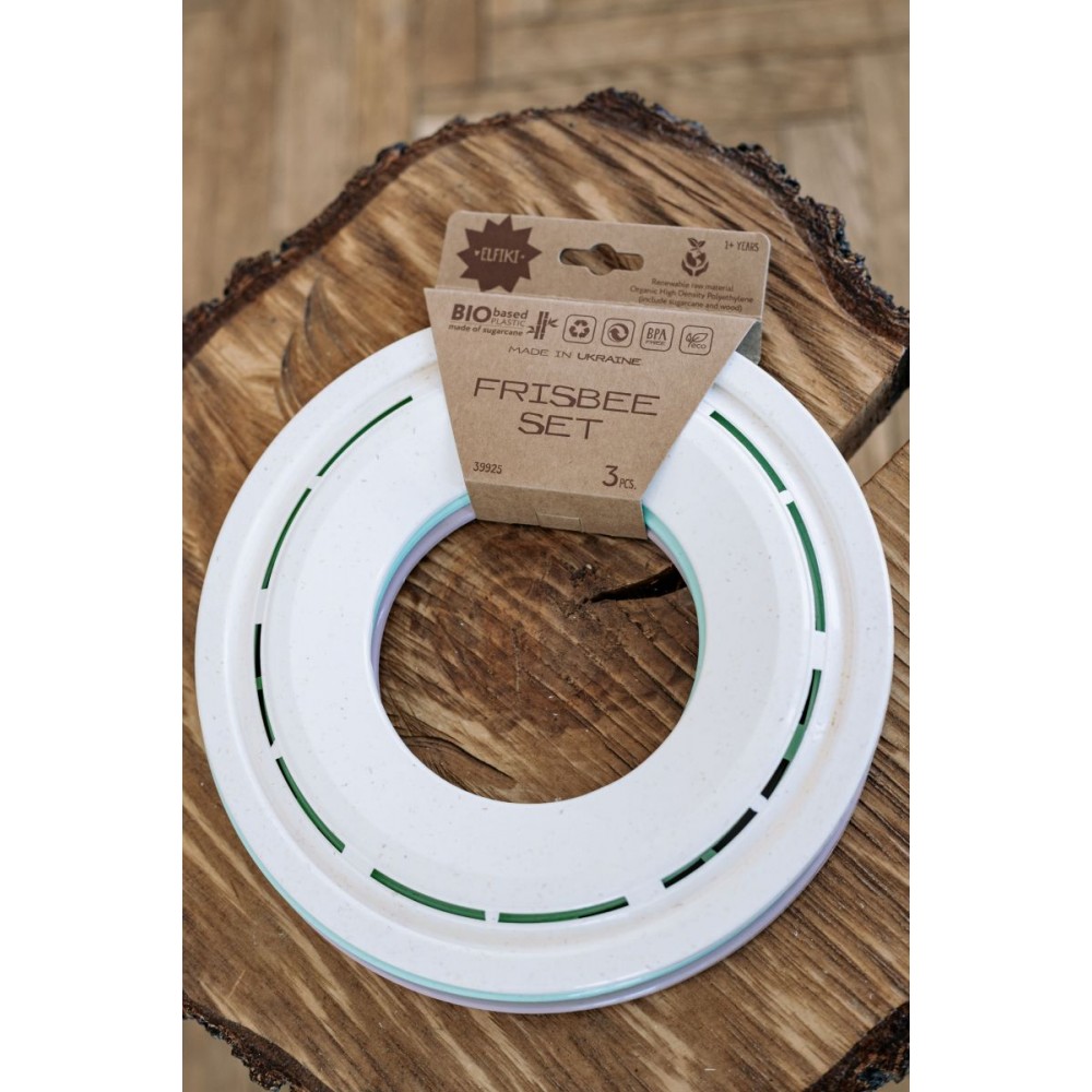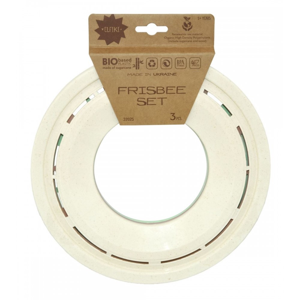 До Вашої уваги нова екологічна іграшка ТМ ELFIKI – ECO Набір Фрізбі 3 шт., ELFIKI Наслідуючи передові світові екологічні тенденції компанія Тигрес, перша в Україні, випустила лінію іграшок на основі біологічної сировини. Лінія іграшок ТМ Elfiki natural - це саме ті якісні іграшки, яким діти будуть радіти протягом тривалого часу. Іграшки виготовлені з біопластику (поліетилену Green PE TM Braskem) та деревно-пластикового композиту (WPC ). - На відміну від звичайного поліетилену, зелений ПЕ виготовляється не з сирої нафти, а з цукрової тростини. Екологічна іграшка ТМ ELFIKI виготовлена ??з природних матеріалів екологічно чистим способом. Спосіб без виділення вуглецю, парникових газів або хімічних токсинів. Вони можуть потрапляти у водні шляхи та навколишнє середовище. - Поліетилен на біологічній основі (Bio-PE) підходить для екструзії, лиття під тиском і видувного формування та на 100% придатний для вторинної переробки (100% recycled). - З екологічно чистим поліетиленом Green PE та WPC висока якість матеріалу може бути оптимально поєднана з безпекою, екологічністю та можливістю переробки. Іграшки мають пастельний колір з вкрапленнями деревинита приємний натуральний запах деревини. ми виробляємо іграшки без клею та шурупів. Іграшка досить проста у використанні. Достатньо запустити літаючу тарілку і вона полетить далеко – далеко. Іграшка фризбі допоможе дитині розвинути такі здібності, як швидка реакція, спритність, вправність, координацію рухів, а також поліпшити сприйняття простор та посприяє фізичному розвитку. Літаюча тарілка стане улюбленою іграшкою активних і веселих дітей, які люблять грати на свіжому повітрі в колі родини, друзів та домашніх улюбленців. Також Фризбі може бути як інтерактивна іграшка для собак всіх порід. Підходить собакам, які особливо люблять бігати і грати з іграшками. Яскравий колір дозволяє легко відшукати в траві. Рекомендовано для дітей віком від 1 року Діаметр – 23 см. В комплект входить три диски в різних кольорах. Пакування: стрічка з крафт картону. Обираючи українську іграшку ви дбаєте про розвиток і майбутнє наших дітей!