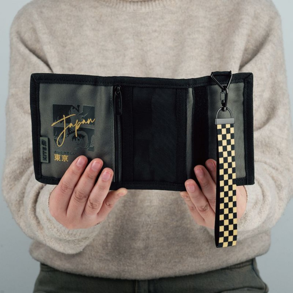 Гаманець зовні: 1 відділення; 1 зовнішня кишеня на блискавці з сіточкою; зносостійкі блискавки; надійна фурнітура. Гаманець всередині: 5 кишень для карток; кишеня для монет на липуці; ключниця. Декор: об'ємний друк, підвіска з тасьми на металевому карабіні.
