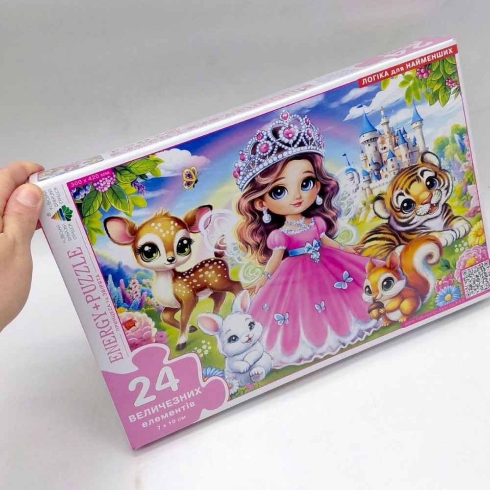 Пазл «Принцеса та звірята» на 24 елементи — це яскрава розвиваюча гра для дітей, яка поєднує казковий сюжет та простий формат складання. Великі деталі зручні для маленьких рук, а барвисте зображення стимулює інтерес до гри. Пазл підходить для дітей від 3 років, сприяє розвитку логічного мислення, уваги та координації рухів, перетворюючи навчання на захопливий процес.