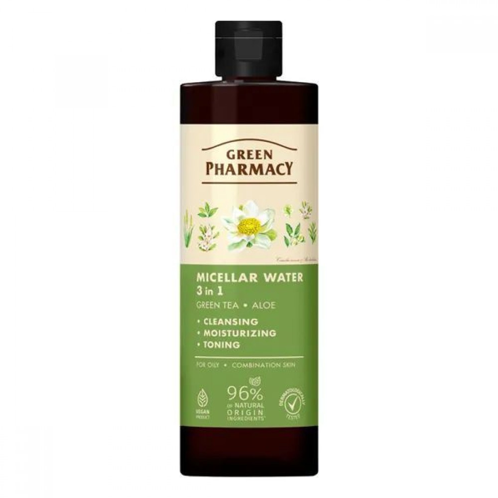 Догляд за шкірою, схильною до підвищеної жирності, має бути ретельним. Для видалення макіяжу візьміть міцелярну воду 3в1 бренду Green Pharmacy.
