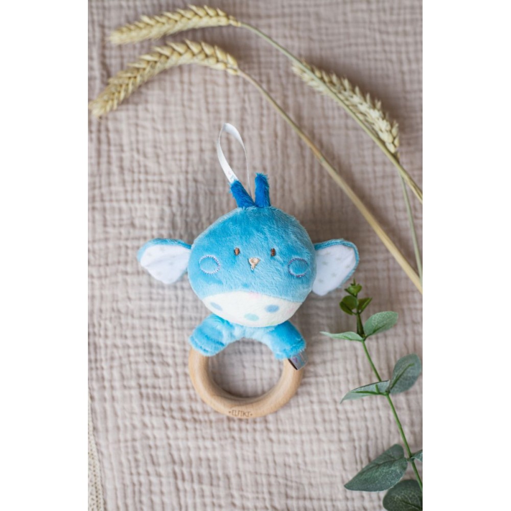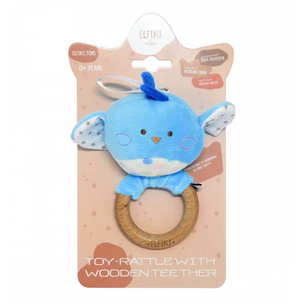 З самого народження люблячі батьки прагнуть оточити свого малюка лише найкращим. Торгова марка ELFIKI подбала про Ваших малюків, випустивши абсолютно нову колекцію еко-іграшок з врахуваням усіх норм безпеки для діток. Іграшка - брязкальце з дерев'яним гризунцем пташка Піпо - стане одним з перших друзів малюка. Дерев'яну ручку у формі кільця, виготовлену з бука, зручно тримати в маленьких ручках. На кільці живе мила пташка Піпо, дуже приємна на дотик і виконана з гіпоалергенних матеріалів. Іграшку можна гризти, трясти та вивчати. За допомогою іграшки, малюк зможе розвинути дрібну моторику, концентрацію, сприйняття кольорів та звуків. Підходить для діток від 0 місяців. Зберіть колекцію брязкалець: ельфік Пуффі, ельфік Айлі, косуля Рубі, сова Мія, пташка Піпо, корона, лама Семмі.