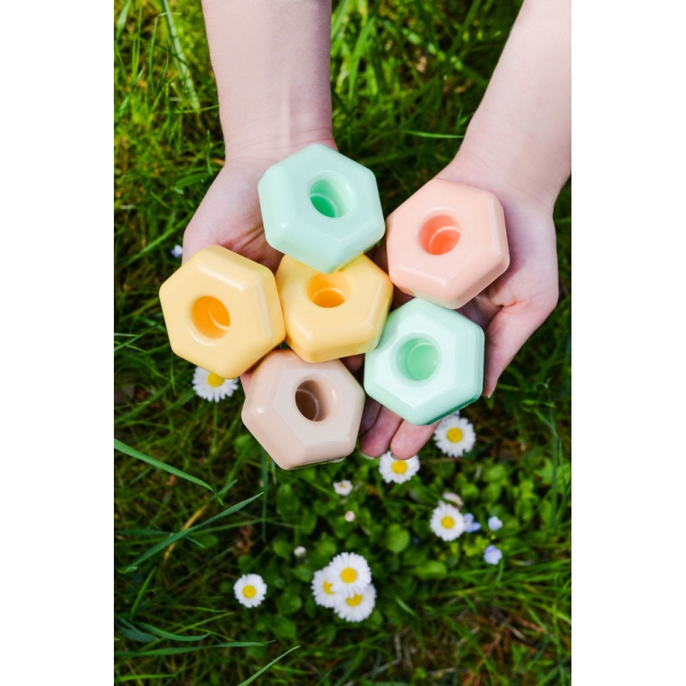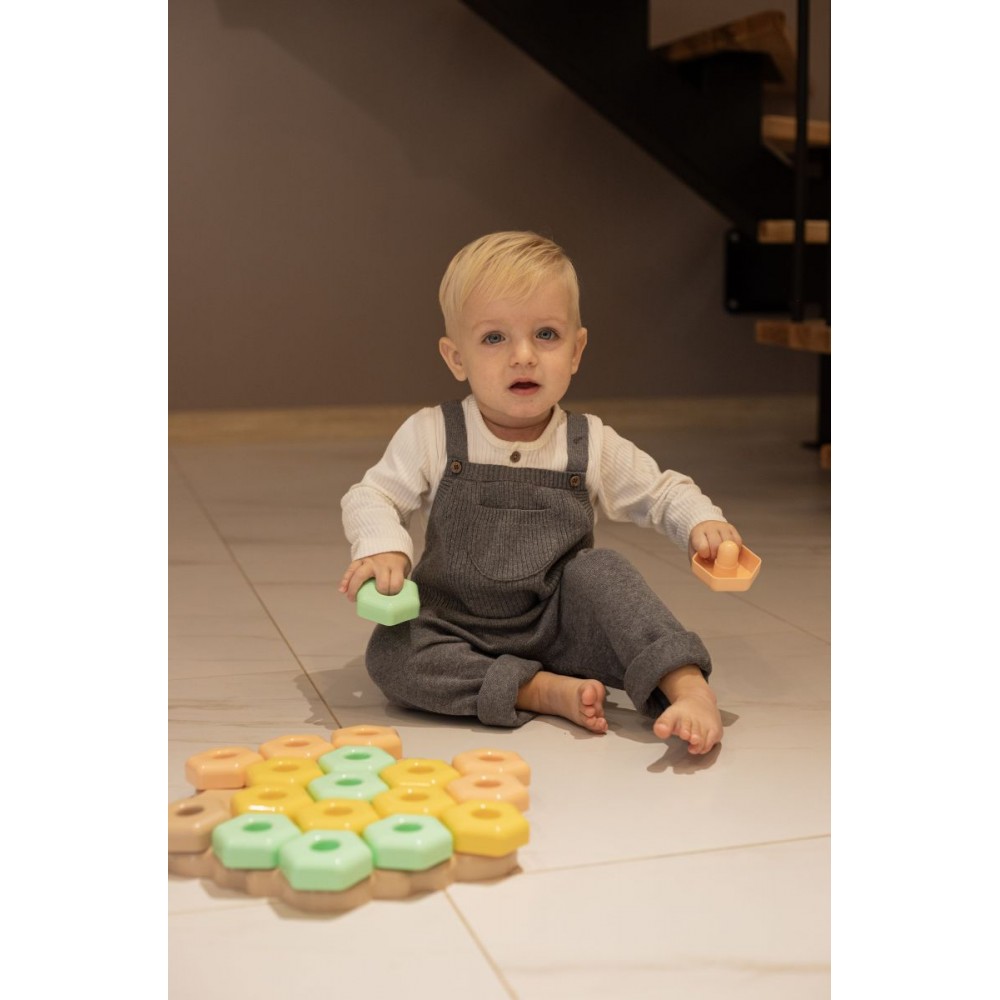 Іграшка «Ігропазли» ELFIKI - це абсолютно новий асортимент еко-іграшок, виготовлених з біопластику. Біопластик - це еко поліетилен високої щільності, що складається з цукрової тростини. Цукрова тростина - відновлювальна сировина, тоді як синтетичний поліетилен виготовляється з викопної сировини у вигляді сирої нафти та нафтового газу. Під час росту, цукрова тростина забирає вуглекислий газ з атмосфери й виробляє кисень. Тому використання біологічного поліетилену - величезний внесок у зменшення парникових газів. Іграшки виготовлені на основі біопластику не поступаються своїми властивостями іграшкам з пластмаси, такі ж міцні й довговічні. Збережемо довкілля разом! Одягаючи яскраві різнокольорові елементи на основу, можна створювати цікаві конструкції: квіточки, тортики, сніжинки, вежі, літачки та багато іншого. Гра сприяє розвитку просторового мислення, інтелекту та уваги дитини, моторики ручок, координації й спритності рухів. Іграшки бренду ELFIKI виготовлені в ніжних трендових кольорах, які виховуватимуть у дитини почуття смаку та стилю. Упакування — коробка картонна.