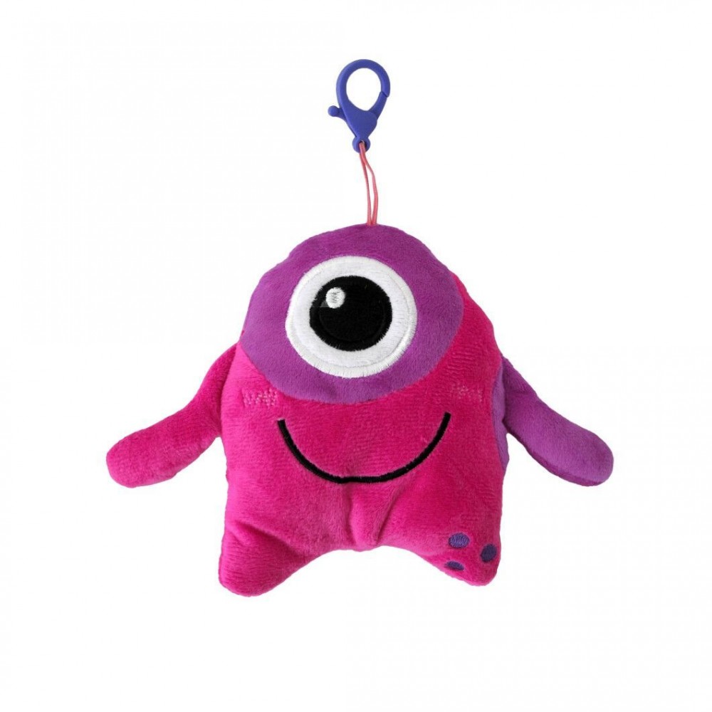 Кумедна іграшка у вигляді фіолетового монстрика "Фіола". М'яка і приємна на дотик, усередині набита кульками. Зверху є кріплення, за допомогою якого іграшку можна причепити на коляску або ліжечко. Розмір: 20х14 см.