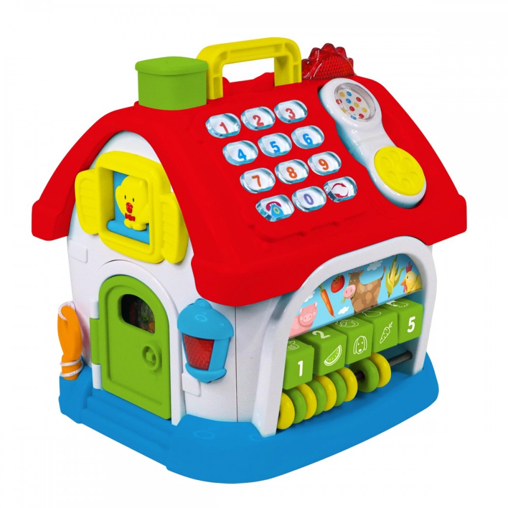 - Ігровий центр сприяє всебічному розвитку малюка. Він знайомиться з кольорами та формами, опановує перші кроки в математиці та здобуває навички лічби. Іграшка допомагає розвинути музичний слух, пам’ять, уважність до звуків і сенсорне сприйняття. Також вона поліпшує дрібну моторику, стимулює сенсорику та знайомить з основами режиму дня і розумінням часу.