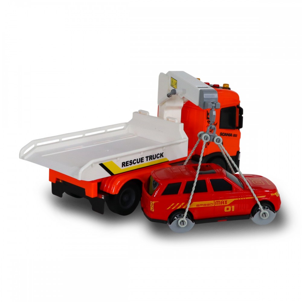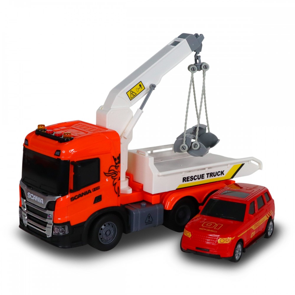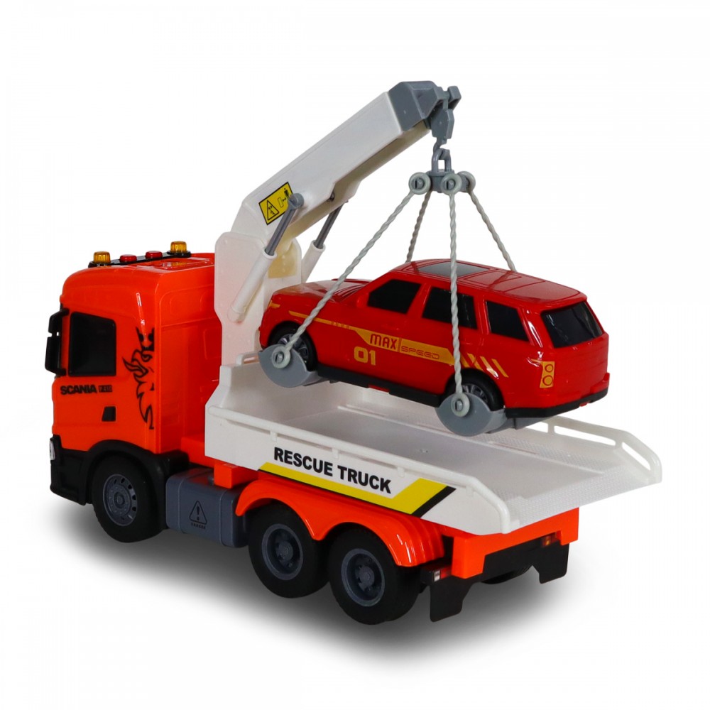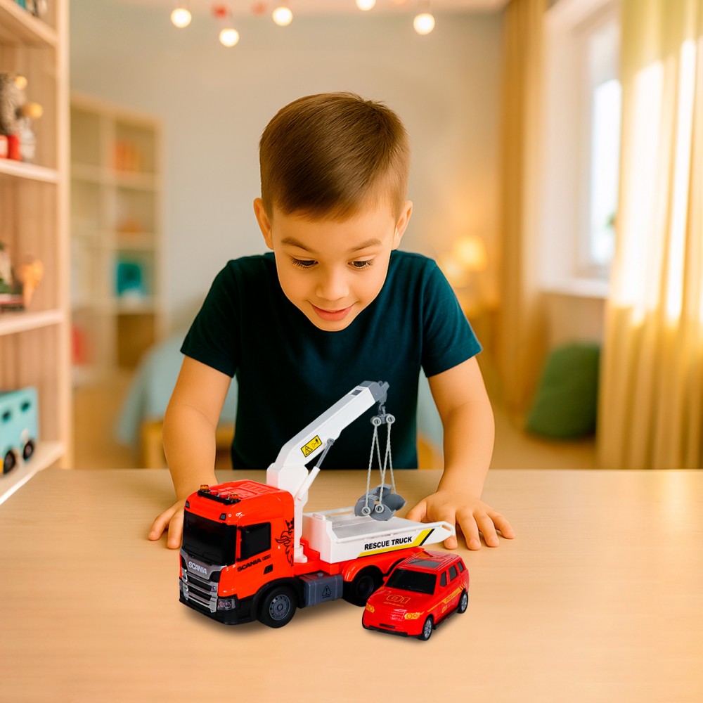 Автомодель серії 'Big Truck' – ЕВАКУАТОР SCANIA З МАШИНОЮ відкриває захопливий світ міської техніки. Ці ігрові моделі створені, щоб сподобатися як малюкам, так і дорослим!