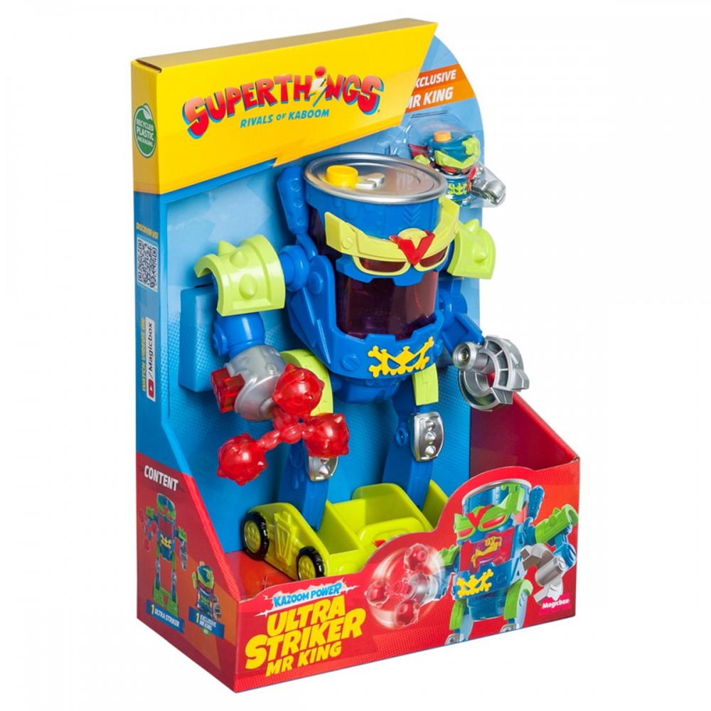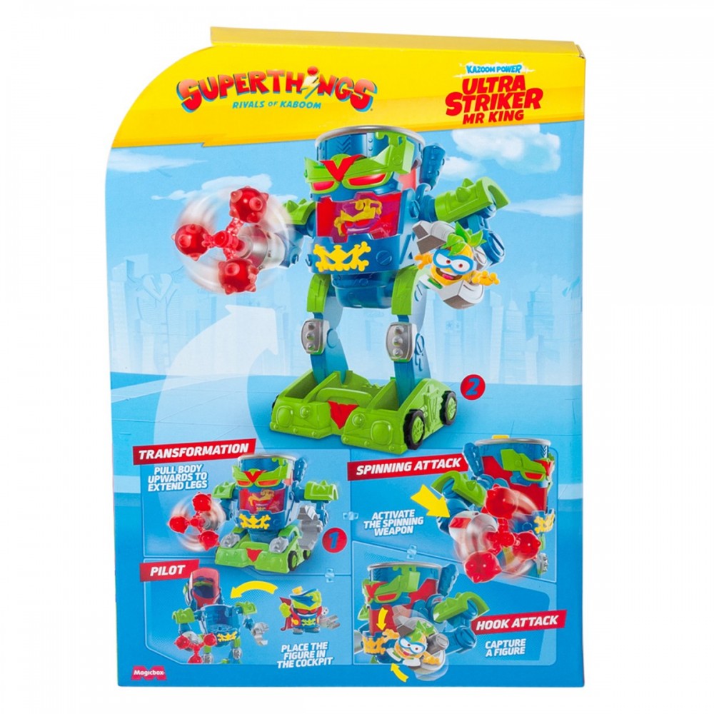 Ультрастрайкер Містер Кінг прибув! Цей яскравий ультрастрайкер, наповнений казум-енергією, здатен трансформуватися та дивувати несподіваними бойовими прийомами. Його рухомі елементи та інтерактивні функції роблять кожну гру ще більш динамічною та захопливою.