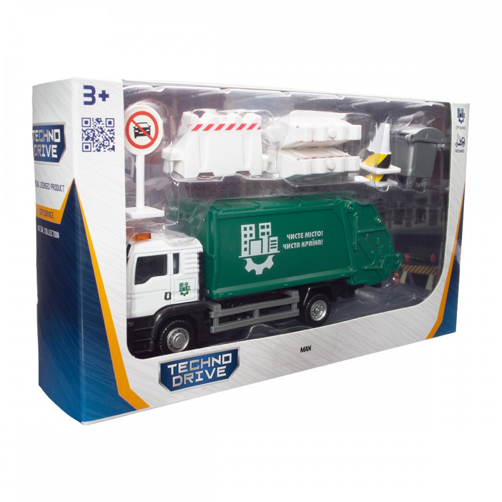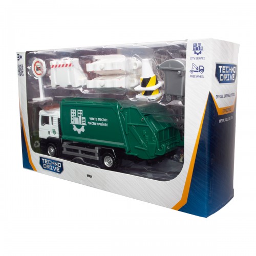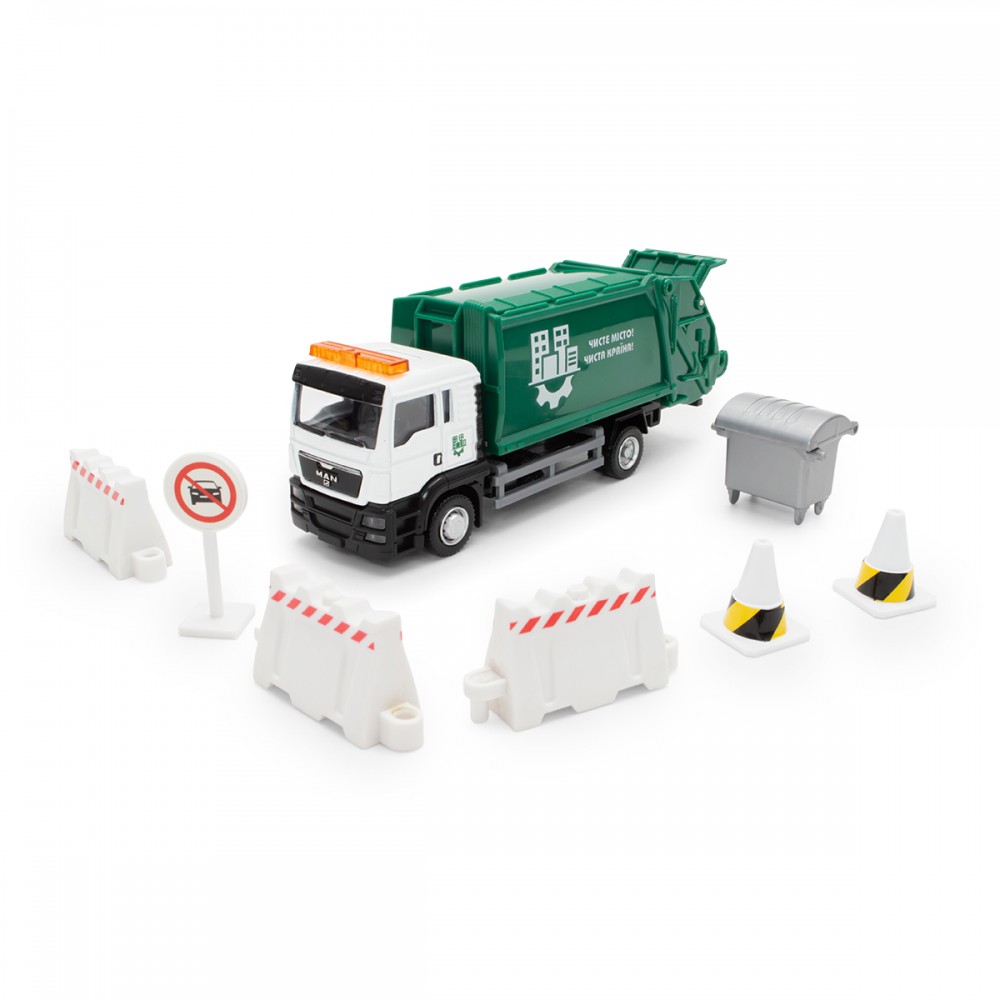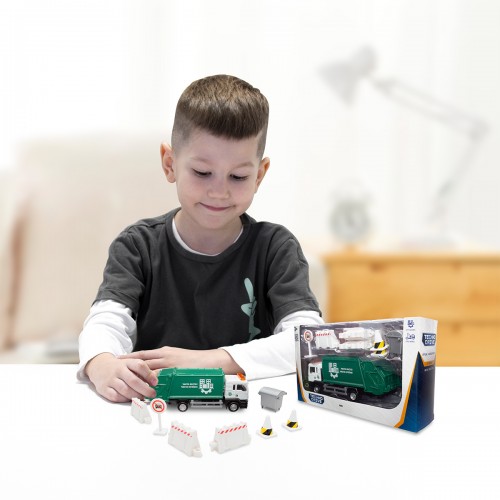 - Модель підійде для різних захоплюючих сюжетів, з її допомогою дитина зможе пофантазувати та весело провести час. А завдяки дорожнім знакам і контейнеру для сміття в наборі, гра стане ще цікавіше!