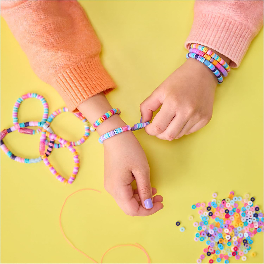 Ігровий набір «Студія для створення браслетів Хейші» від Cool Maker - справжня знахідка для юних красунь. Діти обожнюють створювати власні аксесуари відповідно до свого стилю й смаку. Завдяки наборам для творчості Cool Maker, робити це стає легко та весело! Особливість Ігрового набору «Студія для створення браслетів Хейші» від Cool Maker — ручка для нанизування намистин, яка значно полегшує процес створення браслетів. Просто натисніть кінчиком ручки на бажану намистинку — і вона вже на місці. Так ви одразу бачите, як формується візерунок. Випадково обрали не той колір? Не проблема! Натисніть кнопку зверху — і намистинка «вистрибне». Візерунок не сподобався повністю? Ручку можна спорожнити одним натисканням. Коли все готово — вставляйте ручку в студію, закріплюйте гумку й застібки, натискайте зверху — і намистинки автоматично нанизуються. Потім просто помістіть зап’ястя в студію, злегка натягніть гумку й натисніть кнопку — готовий браслет вже на руці. Так стильно та просто! Для завершення образу можна додати яскравий манікюр із малюнками — за допомогою манікюрного салона «Go GLAM» від Cool Maker (Арт. SM37531/5813. Продається окремо.)