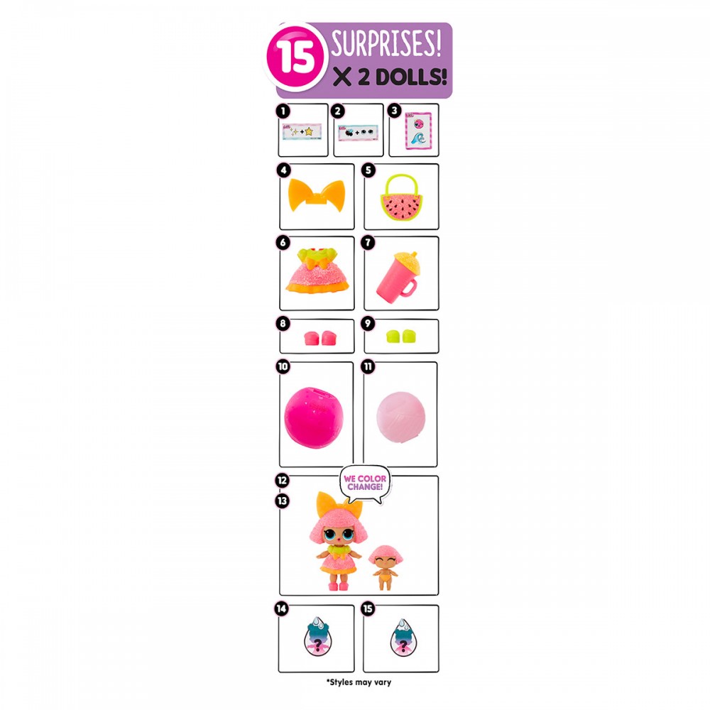 Зустрічайте новий ігровий набір з ляльками L.O.L. Surprise! серії 'Color change Me&My' 2в1 – КРИХІТКА ТА СЕСТРИЧКА, що складається з двох кульок із сюрпризами.