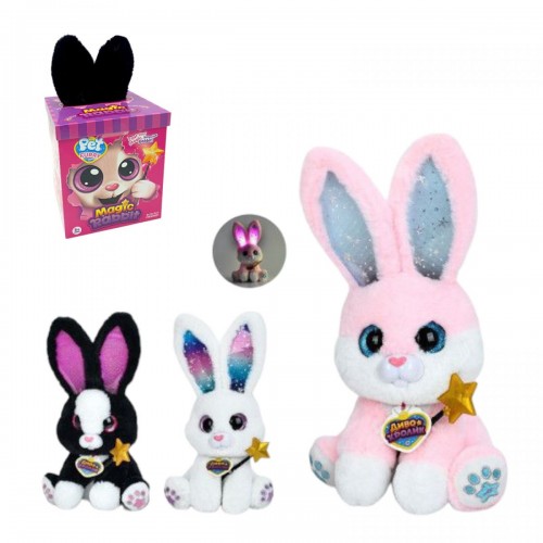Інтернет-магазин eToys пропонує вашій увазі товар "Інтерактивна іграшка Магічне зайченя, сидяча, вушка підсвічуються, пісні англійською, відтворює мелодії, реагує на дотик палички до носа, в коробці, (РОЖЕВИЙ)" за ціною 893 грн..