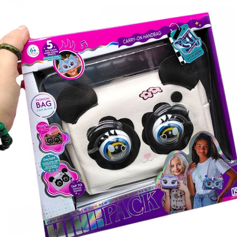 Популярна іграшка у вигляді інтерактивної сумочки з великими оченятами готова стати найкращою подружкою для малечі! Адже маленьке звірятко вміє кліпати, відтворювати різні звуки та навіть програвати музику! Сумочка має містке відділення для зберігання різних дрібничок. Ремінець іграшки можна відрегулювати, що допоможе зробити гру максимально комфортною. Особливості:- милий дизайн;- кліпає очима;- видає звуки та програє музику;- реагує на дотик голови;- кнопка увімкнення та кнопка музики знаходиться на сумочці;- сумочка має ремінець, довжину якого можна відрегулювати;- іграшка працює від 3-х батарейок типу “ААА” (не додаються);- сумочка виготовлена з якісних матеріалів, які є безпечними для здоров’я дитини.