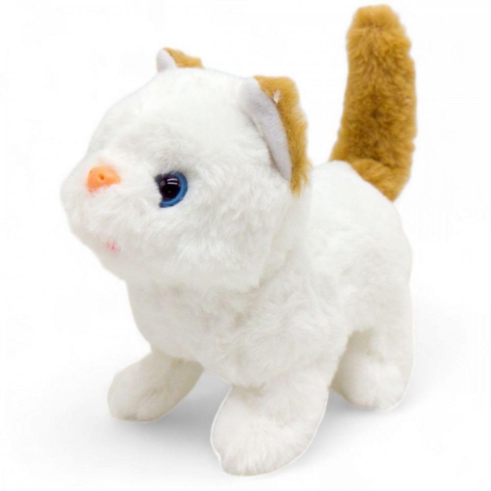 Мила пухнаста кицька, яка вміє бігати, нявчати і виляти хвостиком. Шерстка зроблена з дуже мʼякого і приємного на дотик матеріалу. А під шерсткою міцний пластиковий корпус. Іграшка стане чудовим другом малюку. Розмір іграшки: 16х14х8 см. Працює від 2 батарейок типу АА (немає в комплекті).