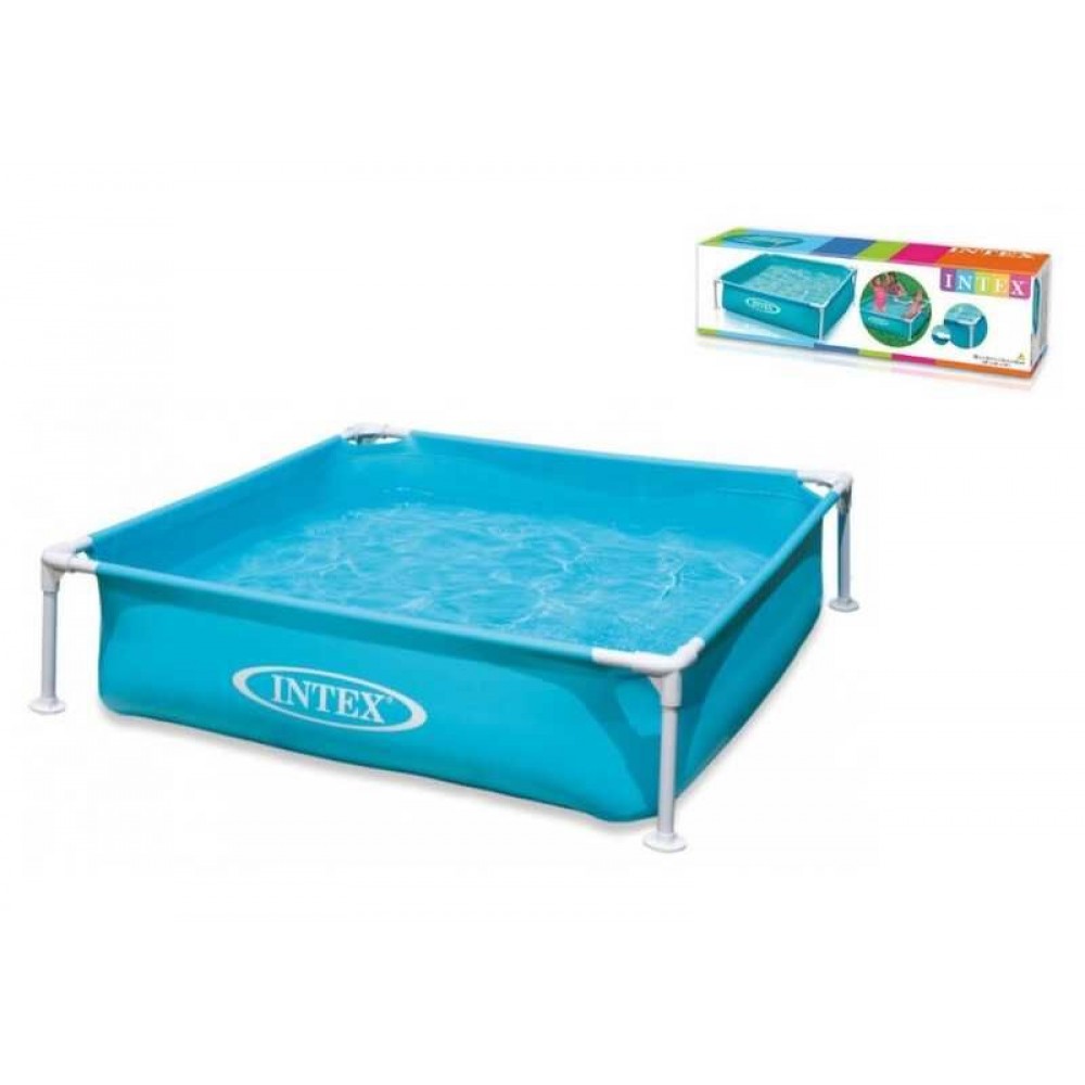 Невеликий каркасний басейн квадратної форми приємного блакитного кольору. Металевий каркас забезпечує міцність конструкції. Чаша басейну виконана із щільного вінілу товщиною 0,50 мм (стінки) та 0,25 мм (дно).