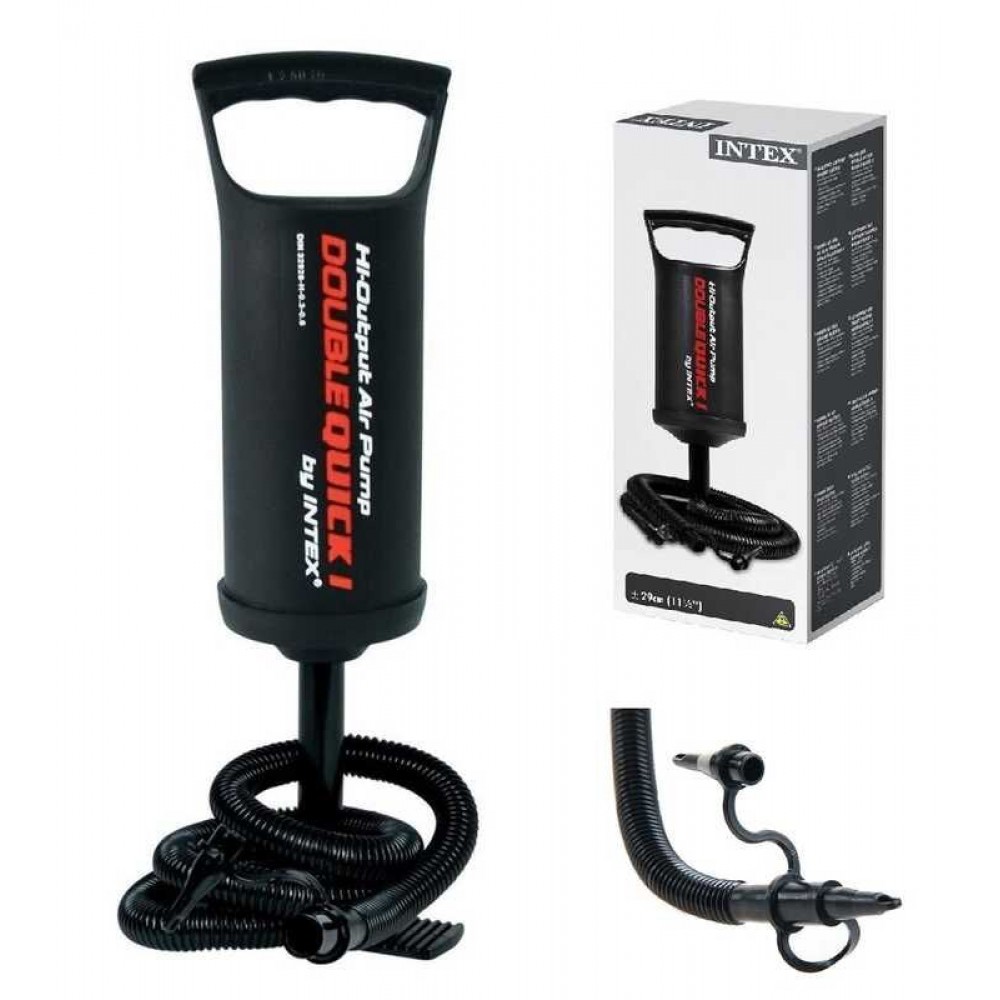 Ручний насос 68612 чудово підійде для накачування надувних виробів Intex. Він має 3 насадки, які служать перехідниками для різних моделей надувних ліжок, подушок, крісел, матраців Intex.