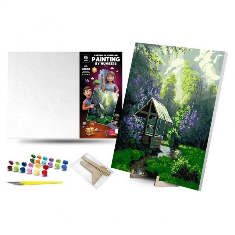 Дитяча картина за номерами. Для того, щоб намалювати картину, необхідно малювати за пронумерованими контурами, які відповідають кольору фарби. У наборі: полотно на підрамнику з галерейною натяжкою, художні нейлонові пензлі, палітра акрилових фарб у контейнерах, деревʼяні деталі підставки для картини. Усі необхідні фарби вже в комплекті та не вимагають змішування. Розмір: 4050 см. Рекомендовано для дітей старше 5 років.