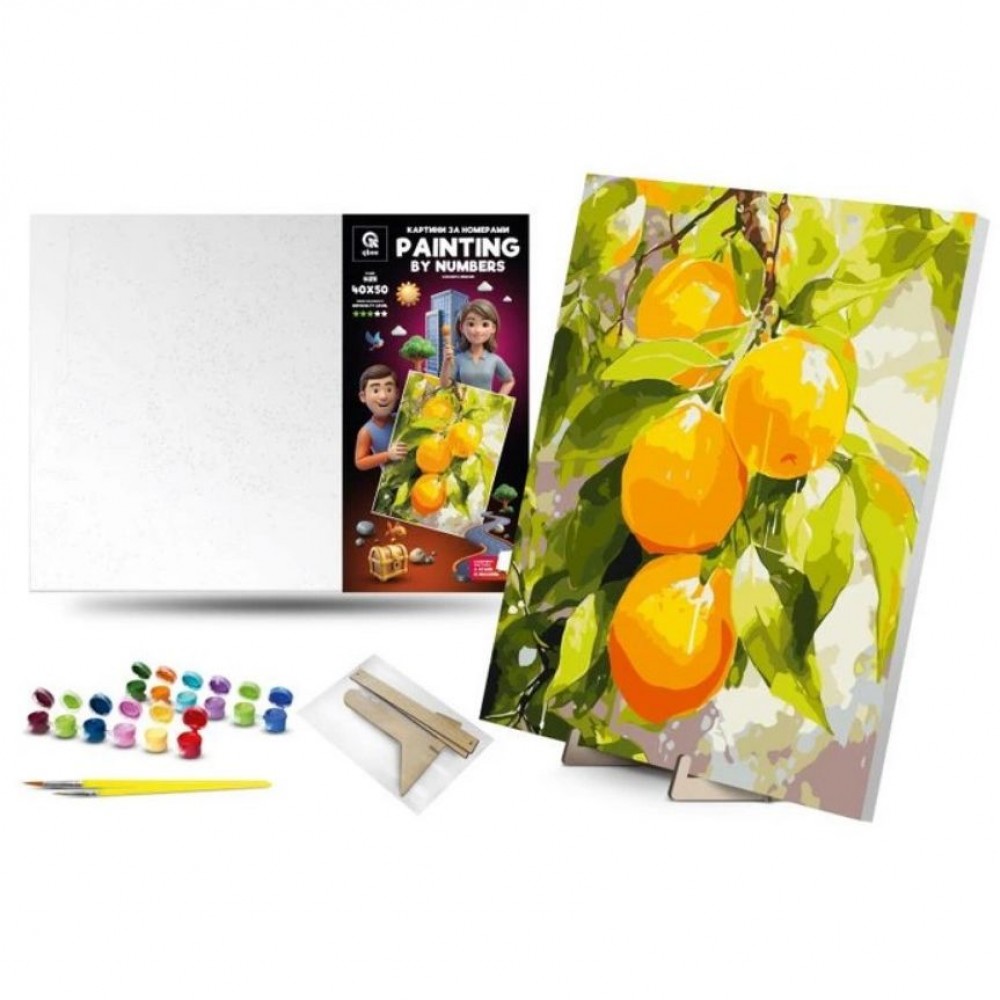Дитяча картина за номерами. Для того, щоб намалювати картину, необхідно малювати за пронумерованими контурами, які відповідають кольору фарби. У наборі: полотно на підрамнику з галерейною натяжкою, художні нейлонові пензлі, палітра акрилових фарб у контейнерах, деревʼяні деталі підставки для картини. Усі необхідні фарби вже в комплекті та не вимагають змішування. Розмір: 4050 см. Рекомендовано для дітей старше 5 років.