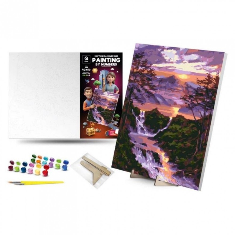 Дитяча картина за номерами. Для того, щоб намалювати картину, необхідно малювати за пронумерованими контурами, які відповідають кольору фарби. У наборі: полотно на підрамнику з галерейною натяжкою, художні нейлонові пензлі, палітра акрилових фарб у контейнерах, деревʼяні деталі підставки для картини. Усі необхідні фарби вже в комплекті та не вимагають змішування. Розмір: 4050 см. Рекомендовано для дітей старше 5 років.