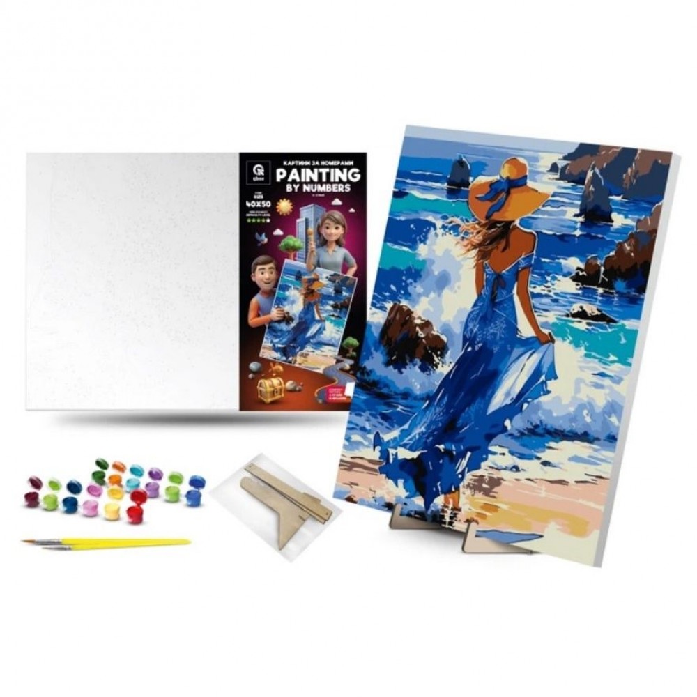 Дитяча картина за номерами. Для того, щоб намалювати картину, необхідно малювати за пронумерованими контурами, які відповідають кольору фарби. У наборі: полотно на підрамнику з галерейною натяжкою, художні нейлонові пензлі, палітра акрилових фарб у контейнерах, деревʼяні деталі підставки для картини. Усі необхідні фарби вже в комплекті та не вимагають змішування. Розмір: 4050 см. Рекомендовано для дітей старше 5 років.