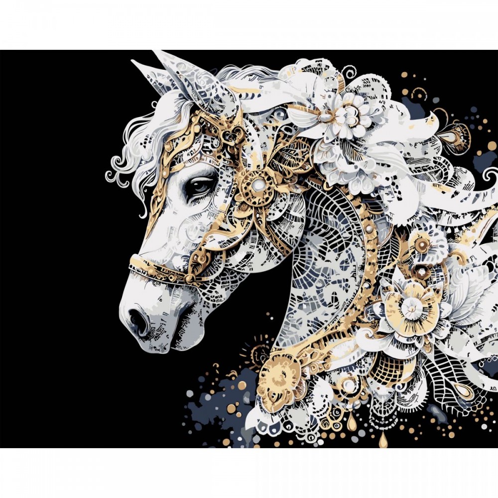 Картина за номерами на чорному фоні. Для того, щоб намалювати картину, необхідно малювати за пронумерованими контурами, які відповідають кольору фарби. У наборі: натуральне полотно на підрамнику з галерейною натяжкою, паперовий дублікат з контурним малюнком картини (на картині нанесена схема контурів зображення з нумерацією), нейлонові художні пензлі, палітра акрилових фарб у контейнерах. Усі необхідні фарби вже в комплекті та не потребують змішування. Розмір: 40х50 см.