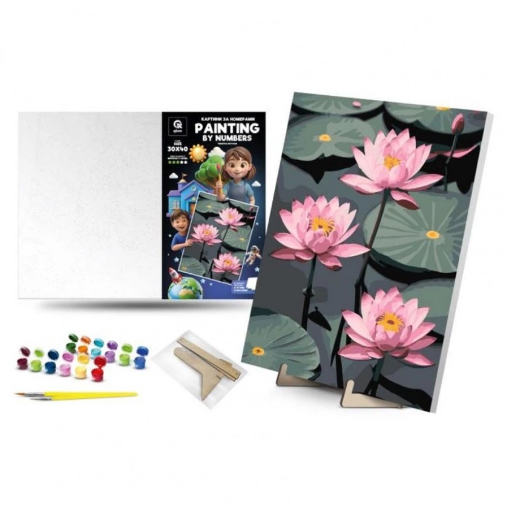 Дитяча картина за номерами. Для того, щоб намалювати картину, необхідно малювати за пронумерованими контурами, які відповідають кольору фарби. У наборі: полотно на підрамнику з галерейною натяжкою, художні нейлонові пензлі, палітра акрилових фарб у контейнерах, деревʼяні деталі підставки для картини. Усі необхідні фарби вже в комплекті та не вимагають змішування. Розмір: 30х40 см. Рекомендовано для дітей старше 5 років.