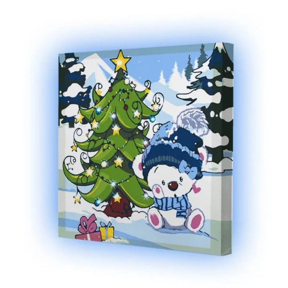 Інтернет-магазин eToys пропонує вашій увазі товар "Картина по номерах зі світлодіодною підсвіткою "Під ялинкою" 25x25 см" за ціною 199 грн..