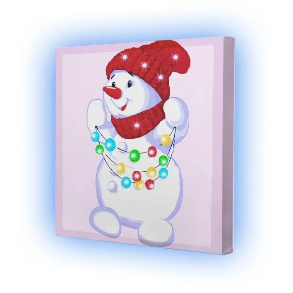 Інтернет-магазин eToys пропонує вашій увазі товар "Картина по номерах зі світлодіодною підсвіткою "Сніговик" 25x25 см" за ціною 199 грн..