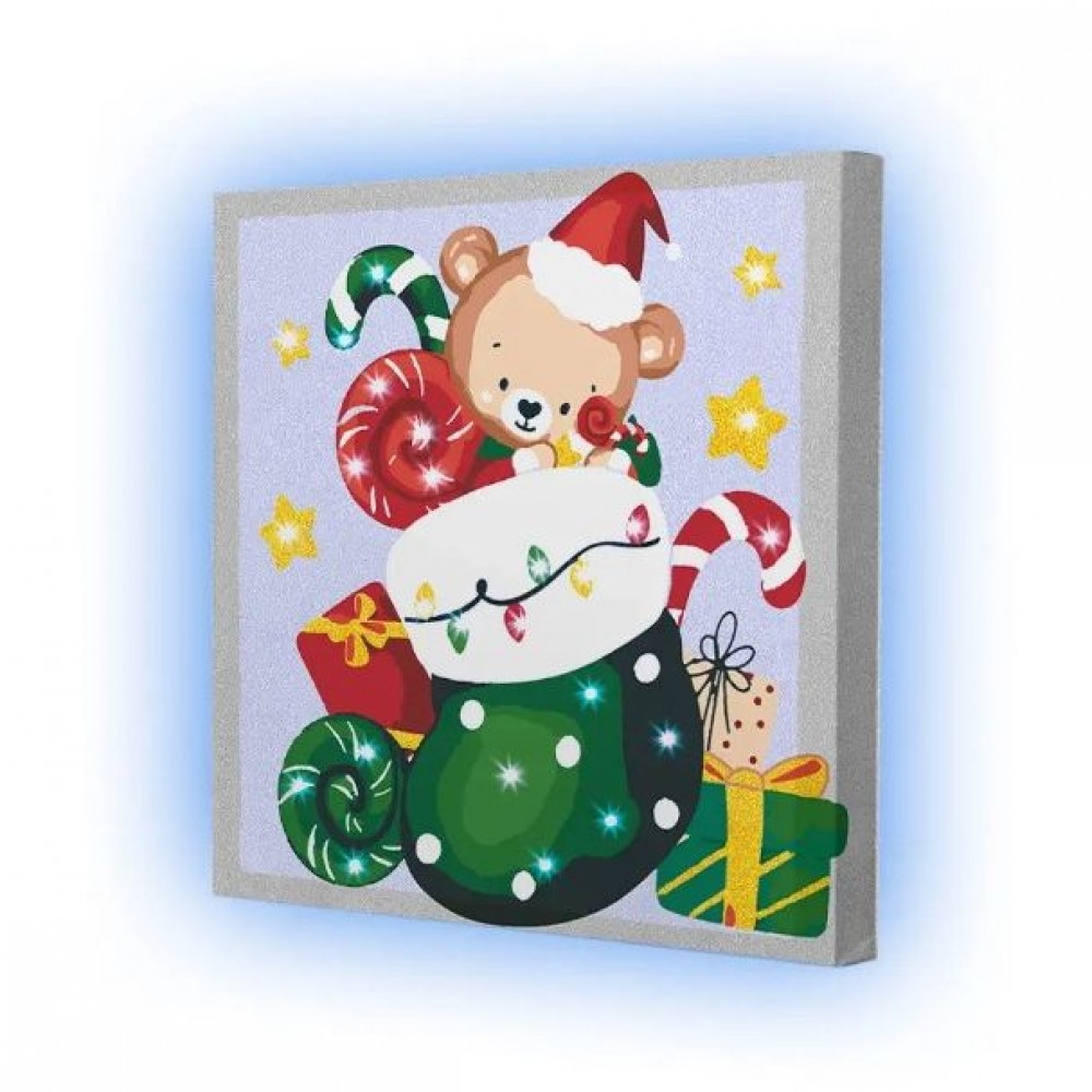 Інтернет-магазин eToys пропонує вашій увазі товар "Картина по номерах зі світлодіодною підсвіткою "Святкова панчоха" 25x25 см" за ціною 199 грн..