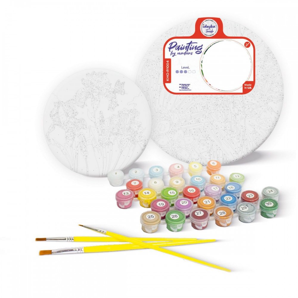 Для того, щоб намалювати картину, необхідно малювати за пронумерованими контурами, які відповідають кольору фарби. У наборі: натуральне полотно на підрамнику з галерейною натяжкою, паперова дублікат з контурним малюнком картини (на картині нанесена схема контурів зображення з нумерацією), 3 художні нейлонові пензлі, палітра акрилових фарб у контейнерах. Усі необхідні фарби вже в комплекті та не вимагають змішування. Діметр: 19 см.