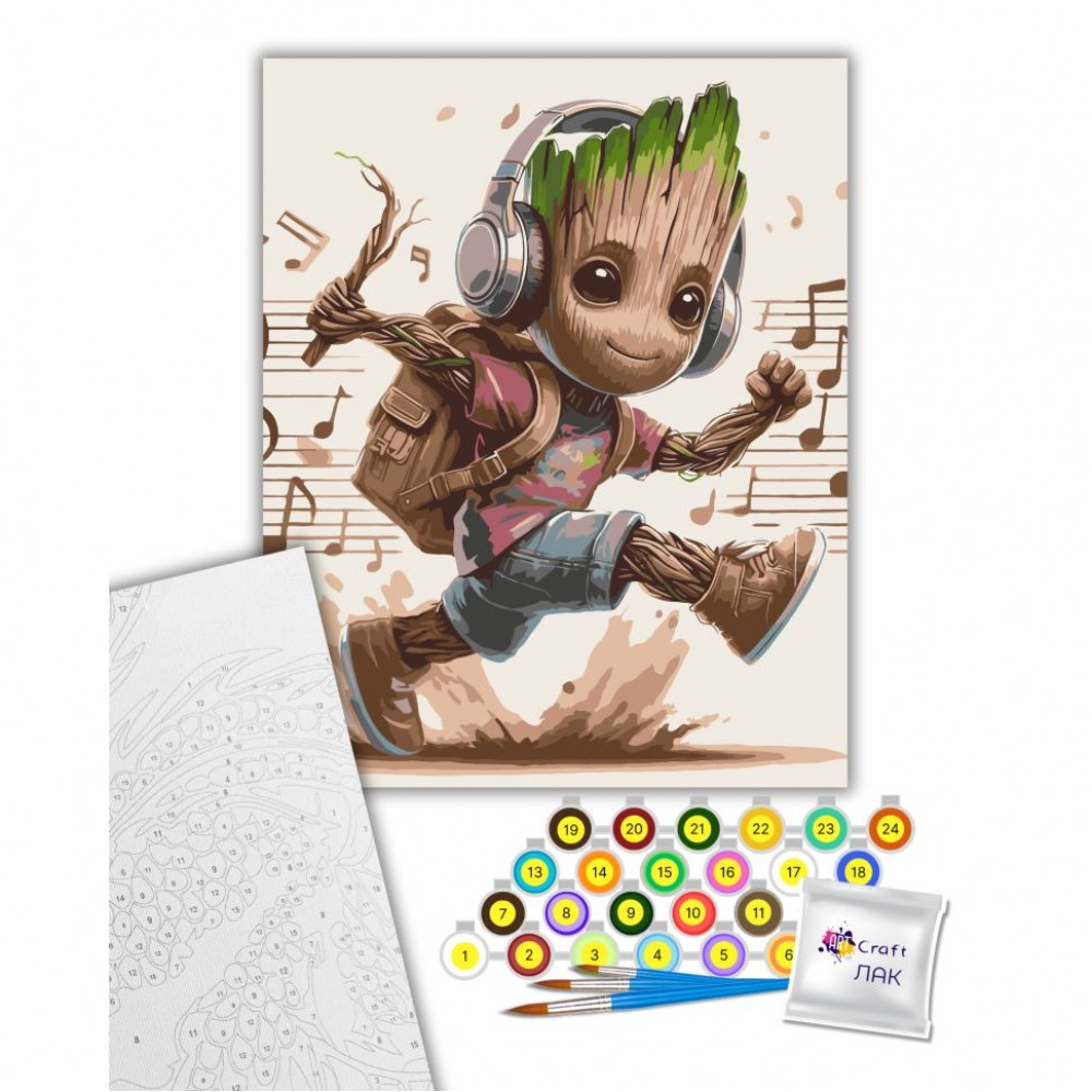 Картина за номерами. Для того, щоб намалювати картину, необхідно малювати за пронумерованими контурами, які відповідають кольору фарби. У наборі: полотно на підрамнику з галерейною натяжкою, паперовий дублікат з контурним малюнком картини (на картині нанесена схема контурів зображення з нумерацією), художні нейлонові пензлі, палітра акрилових фарб у контейнерах. Усі необхідні фарби вже в комплекті та не вимагають змішування. Розмір: 40х50 см.