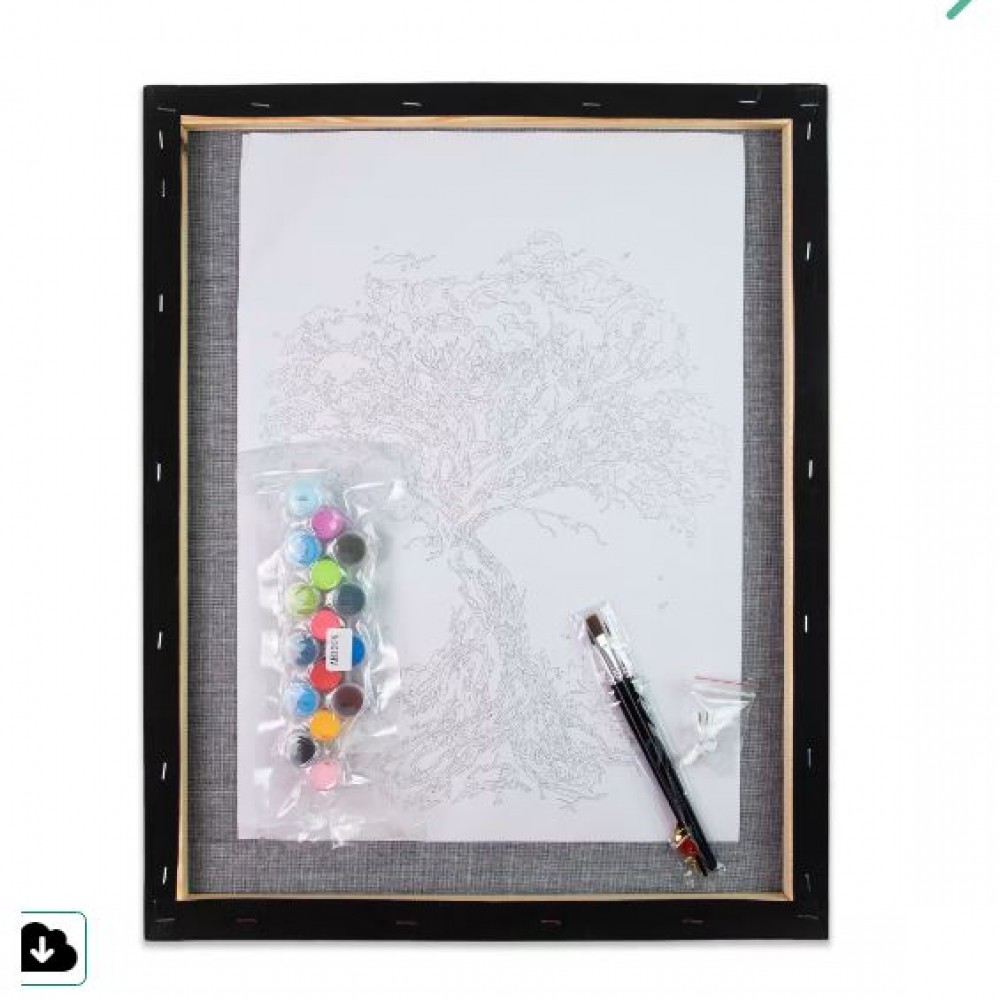Картина за номерами на чорному фоні. Для того, щоб намалювати картину, необхідно малювати за пронумерованими контурами, які відповідають кольору фарби. У наборі: натуральне полотно на підрамнику з галерейною натяжкою, паперовий дублікат з контурним малюнком картини (на картині нанесена схема контурів зображення з нумерацією), нейлонові художні пензлі, палітра акрилових фарб у контейнерах. Усі необхідні фарби вже в комплекті та не потребують змішування. Розмір: 30х30 см.